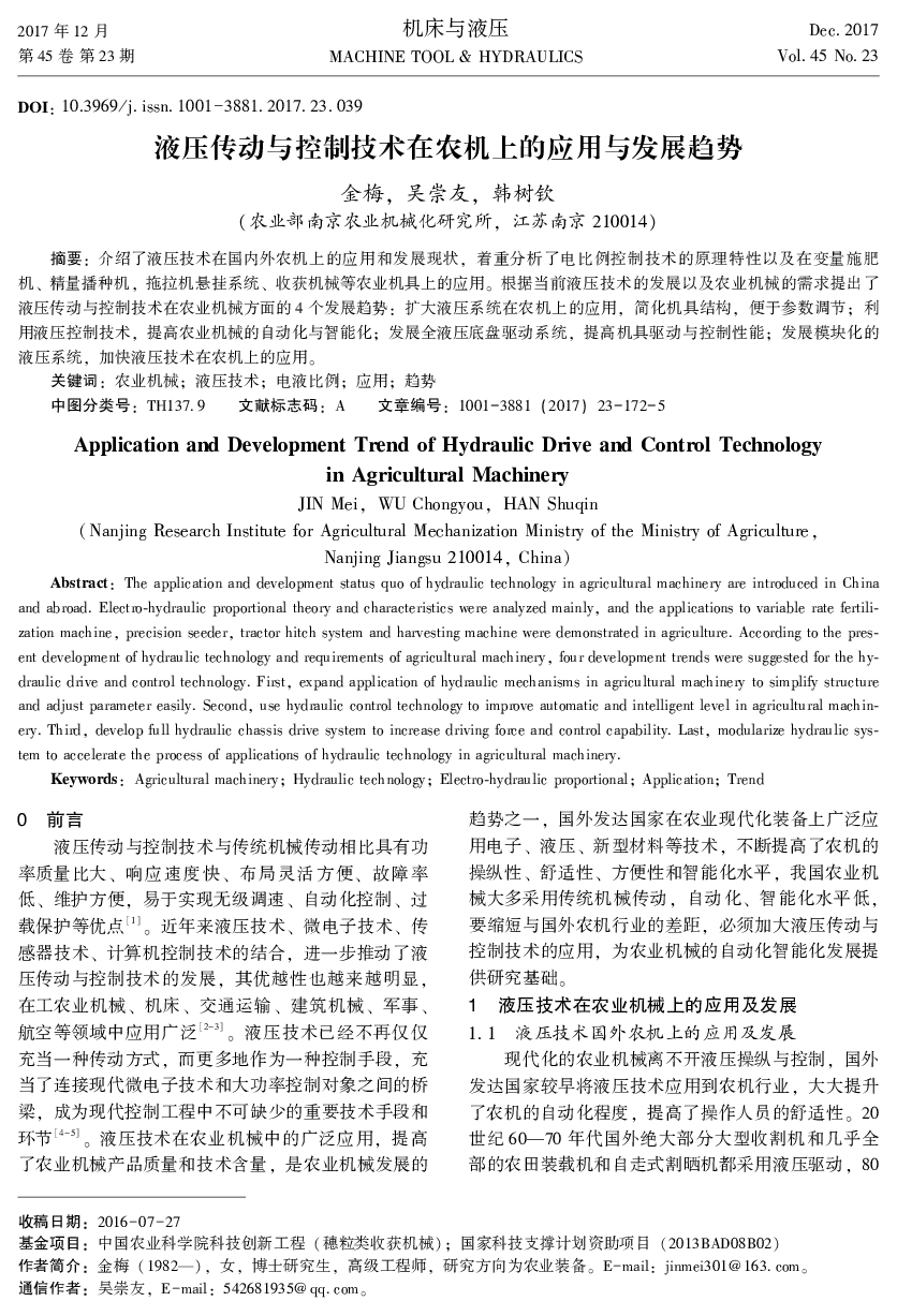 当前位置: 智能网联汽车  >  整车控制器  > 液压传动与控制技术在农机上的应用与发展趋势.pdf