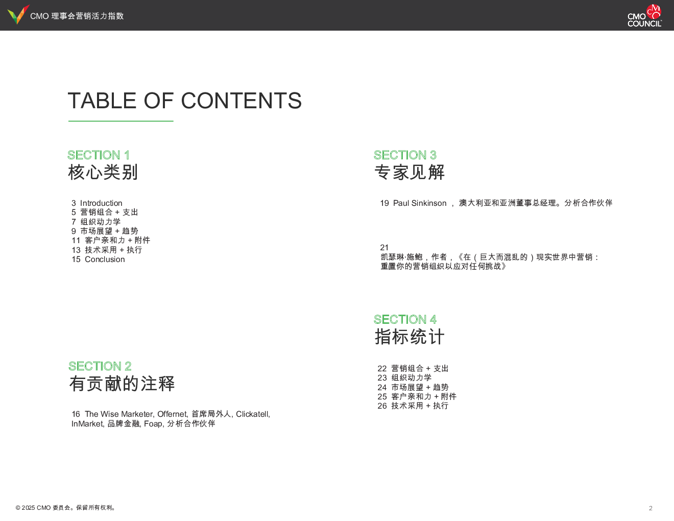 当前位置: 金融&保险&公司治理  >  市场营销/公关  > CMO Council:2025年CMO委员会营销活力指数报告.pdf