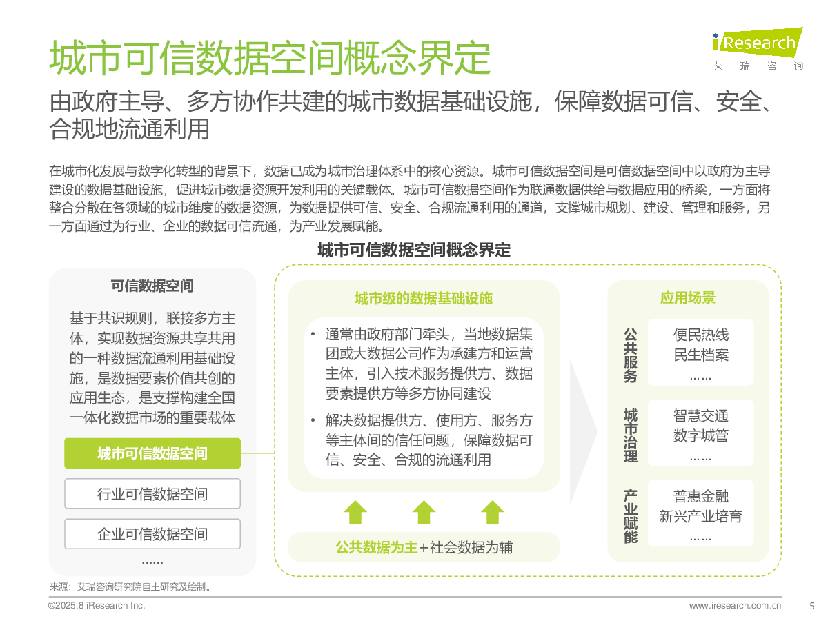 当前位置: 智慧城市  >  城市空中交通  > 艾瑞咨询:2025年中国城市可信数据空间行业研究报告.pdf