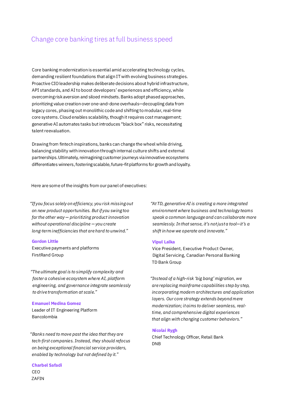 当前位置: 金融&保险&公司治理  >  银行/投融资  > 2025年创造者之声:核心银行系统现代化与全企业AI应用研究报告(英文版).pdf