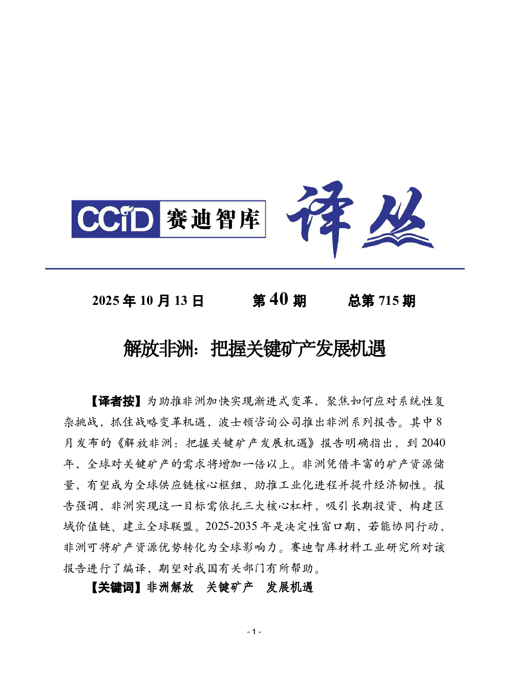 2025年第40期(总第715期):解放非洲:把握关键矿产发展机遇.pdf