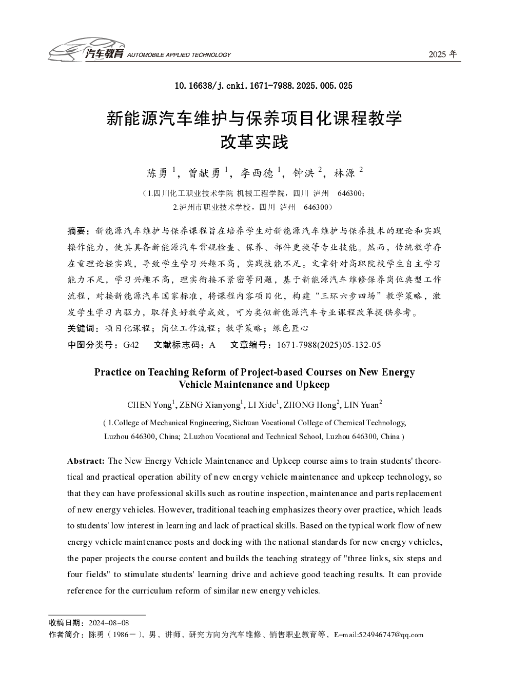 当前位置: 智能网联汽车  >  后市场/汽修配件/养护  > 新能源汽车维护与保养项目化课程教学改革实践.pdf