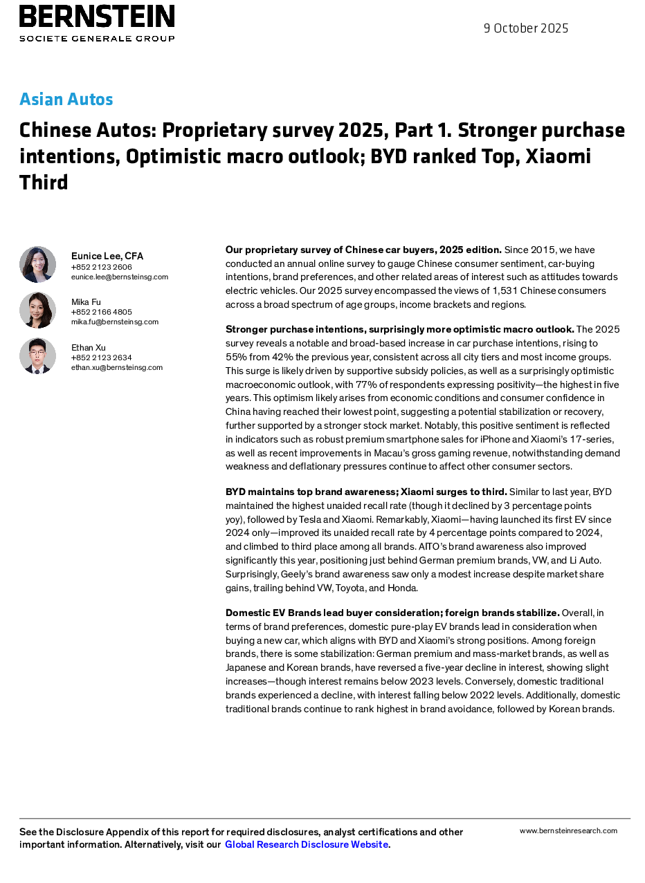 当前位置: 金融&保险&公司治理  >  行业分析报告  > (英)中国汽车:2025年购买意向增强,比亚迪第一,小米第三.pdf