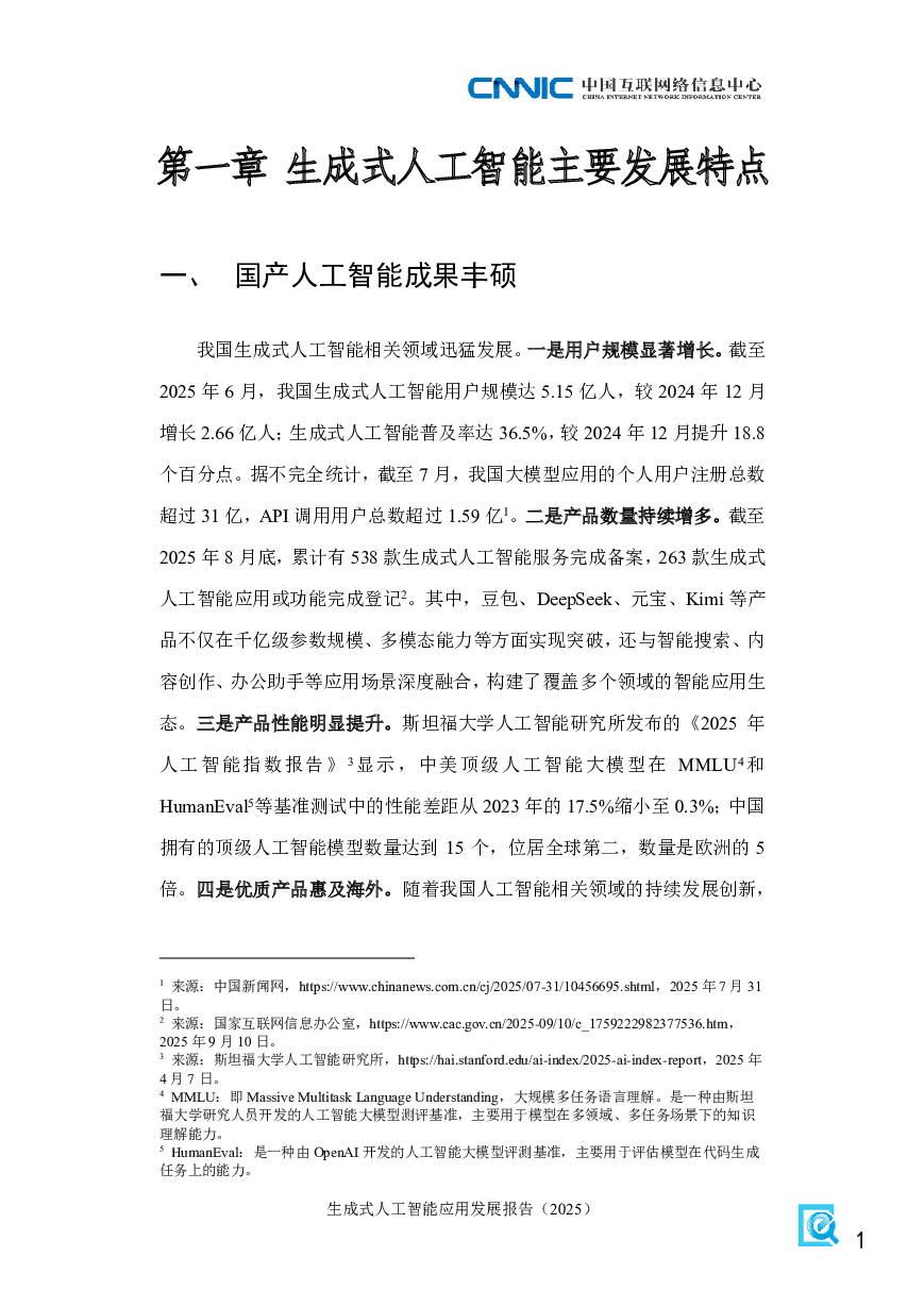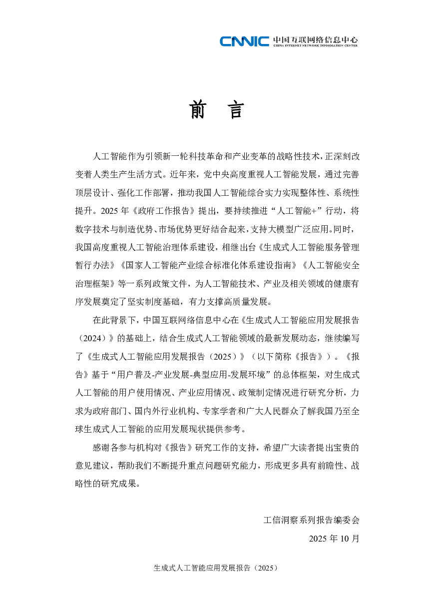 中国互联网络信息中心:生成式人工智能应用发展报告(2025).pdf