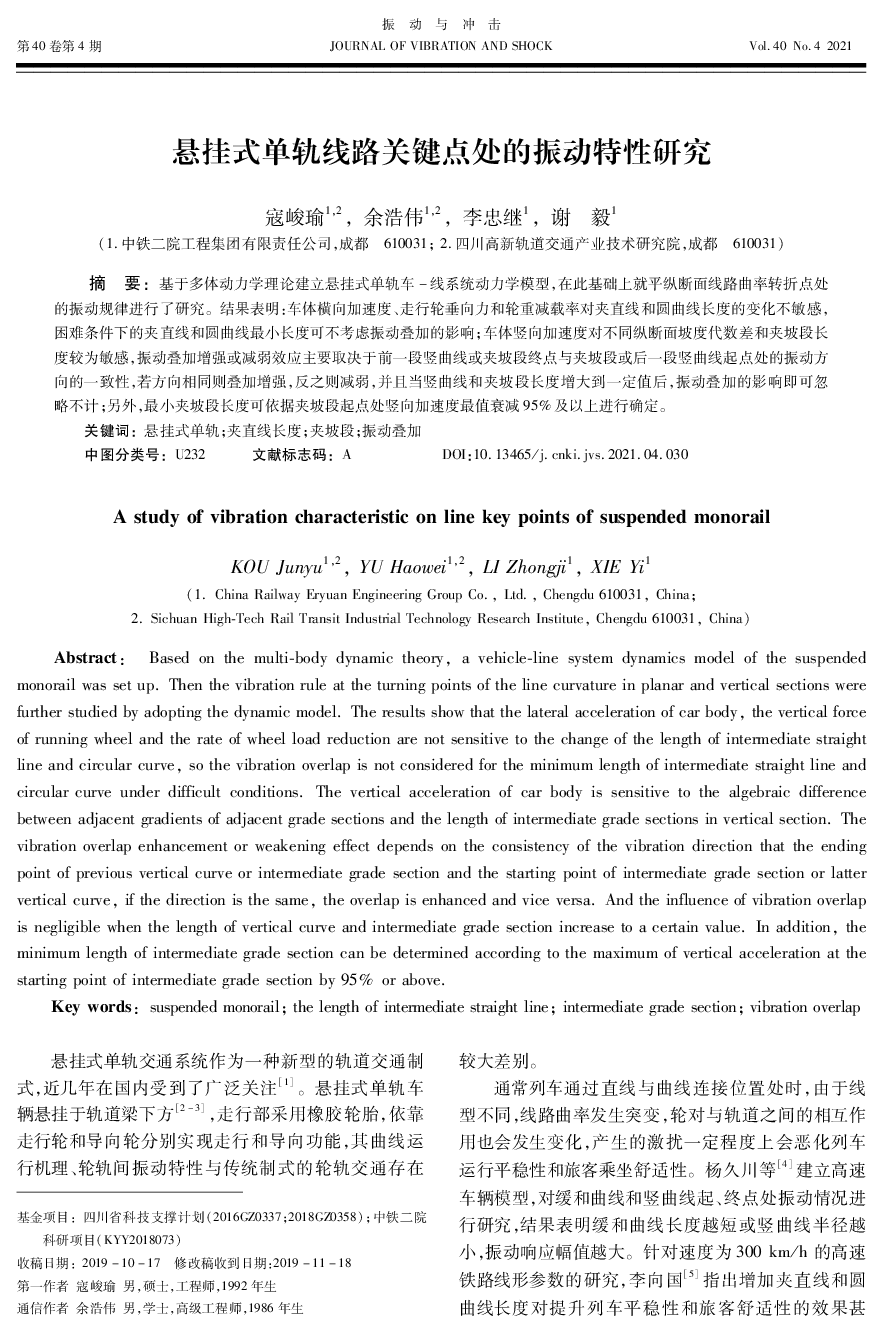 悬挂式单轨线路关键点处的振动特性研究.pdf