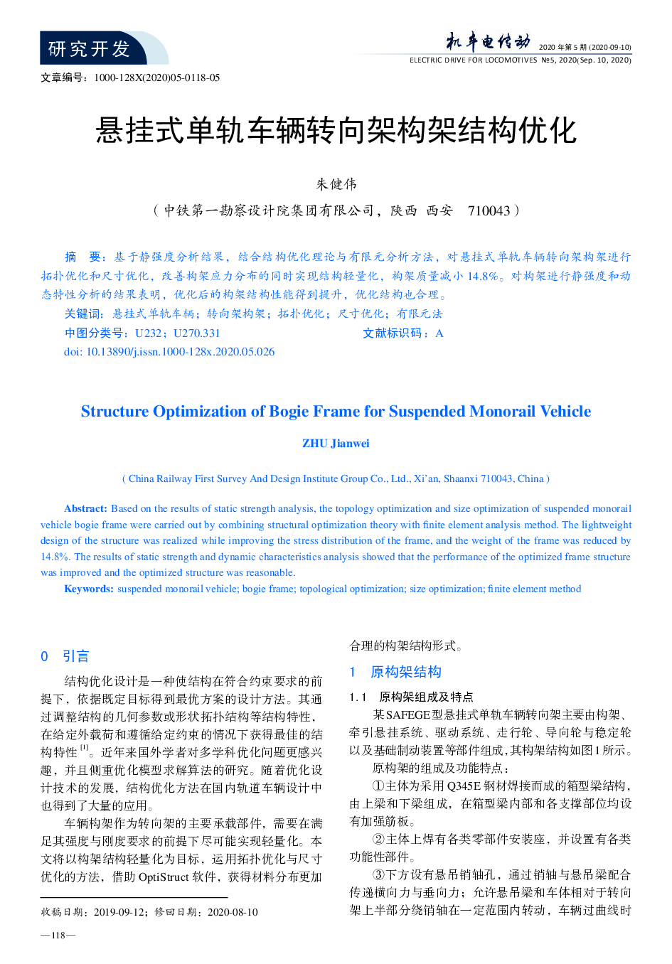 悬挂式单轨车辆转向架构架结构优化.pdf