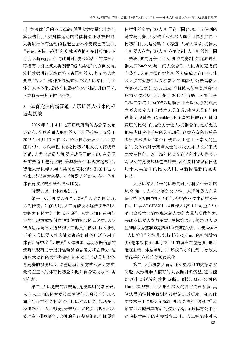 “超人类化”还是“人机共生”?――漫谈人形机器人对体育运动发展的影响.pdf