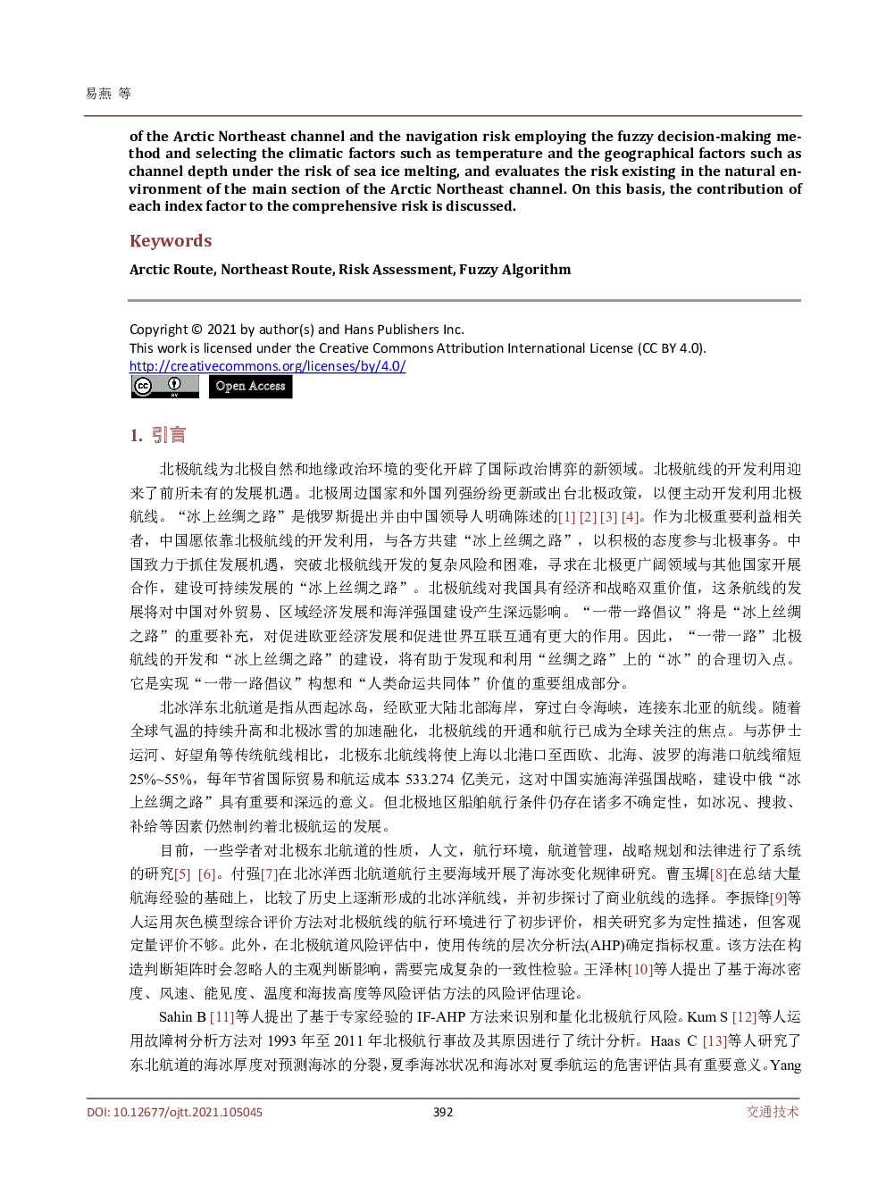 基于模糊决策法的北极东北航线风险评估.pdf