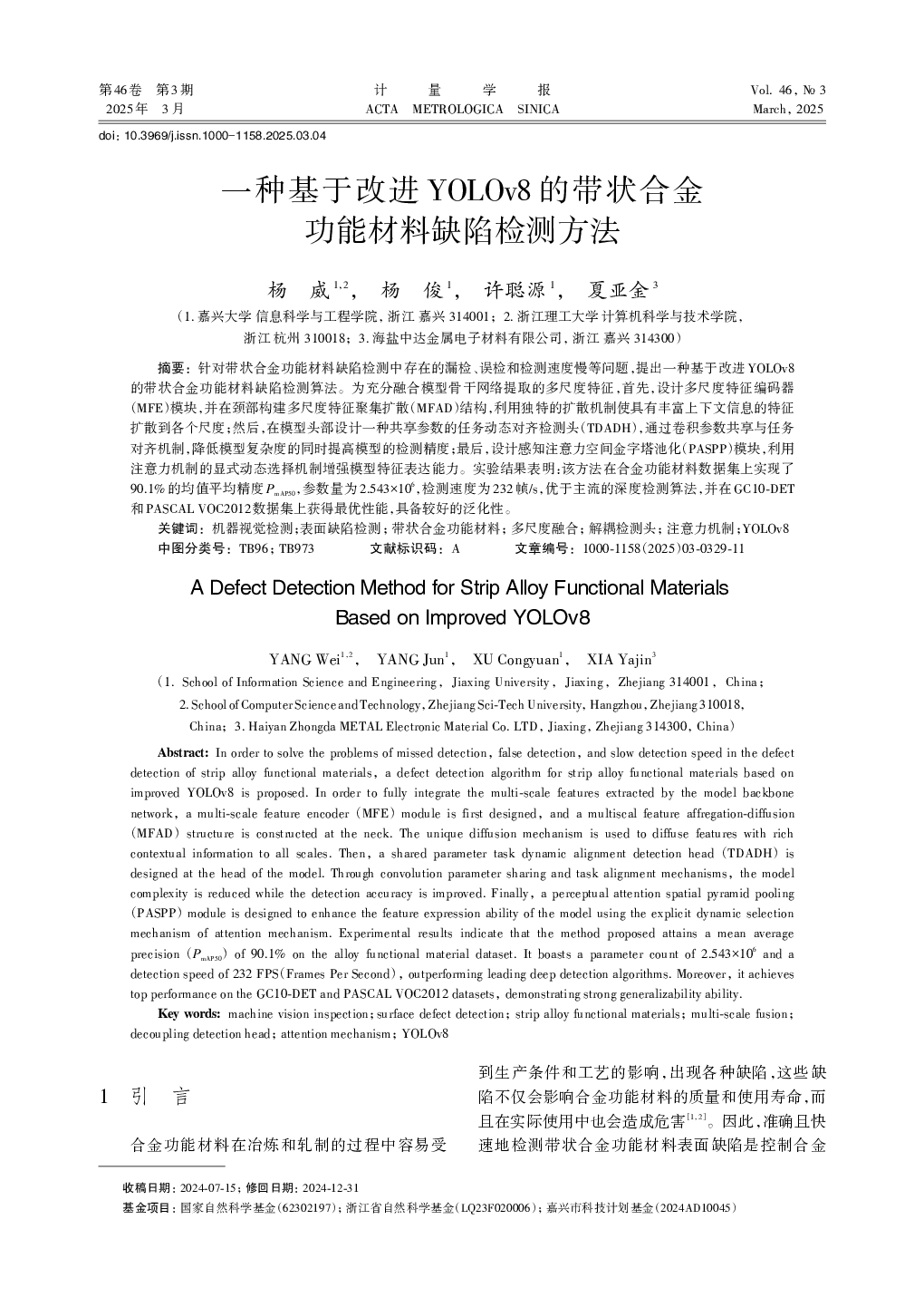 一种基于改进YOLOv8的带状合金功能材料缺陷检测方法.pdf