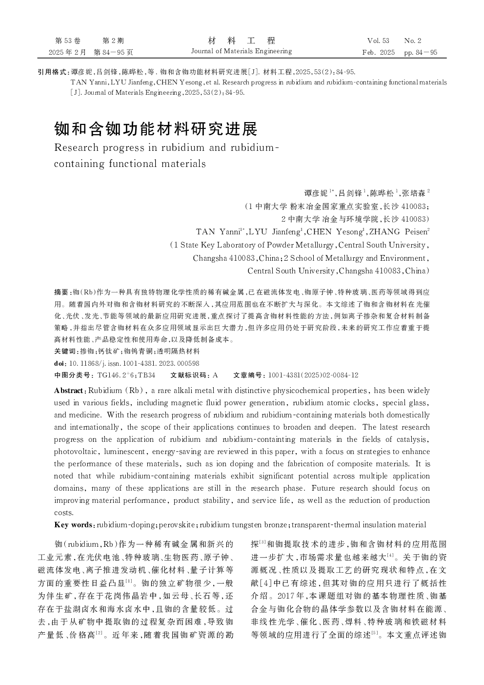 当前位置: 新材料创新  >  高端功能与智能材料  > 铷和含铷功能材料研究进展.pdf