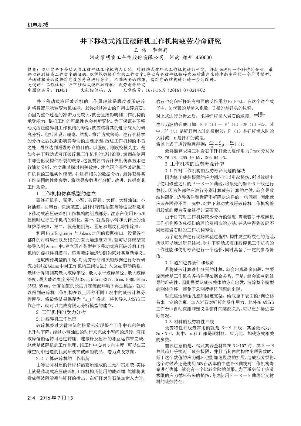 井下移动式液压破碎机工作机构疲劳寿命研究.pdf