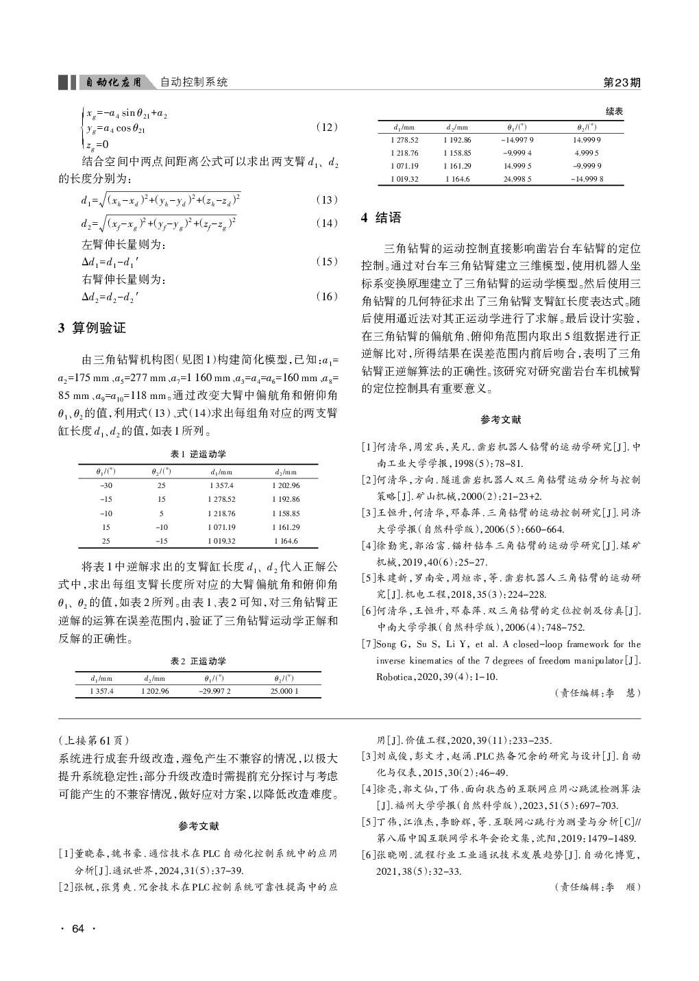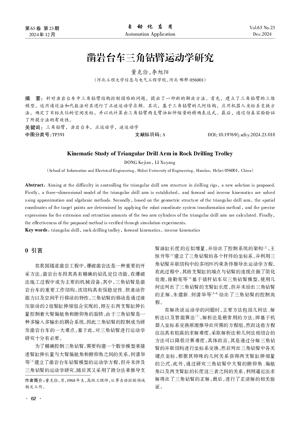 凿岩台车三角钻臂运动学研究.pdf