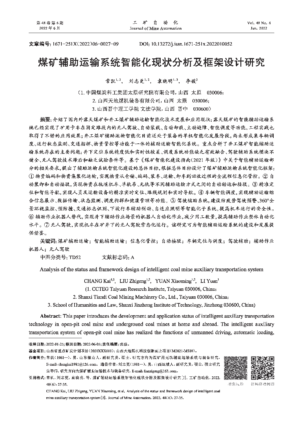 煤矿辅助运输系统智能化现状分析及框架设计研究.pdf