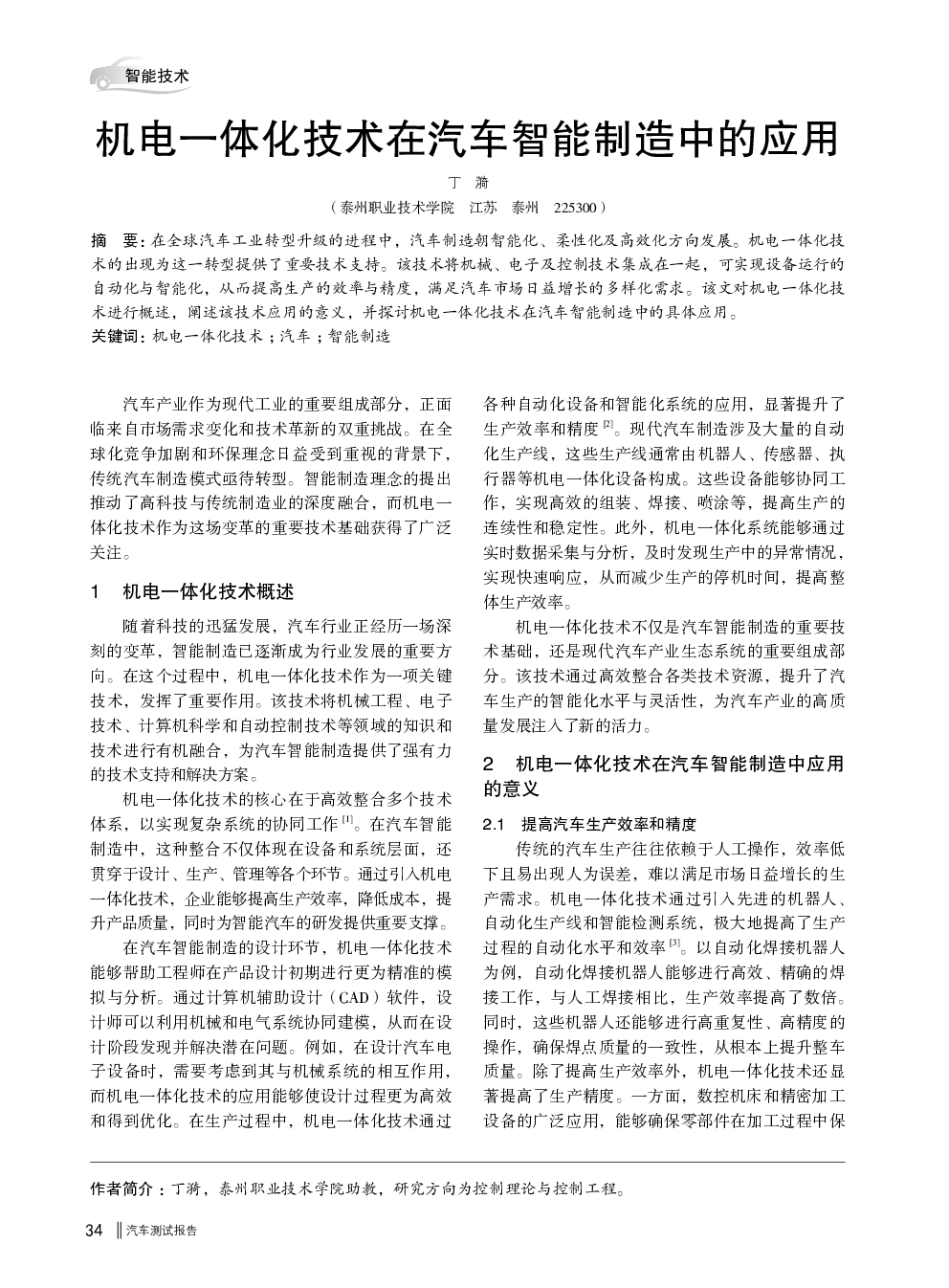 当前位置: 智能网联汽车  >  车路云一体化  > 机电一体化技术在汽车智能制造中的应用 (4).pdf