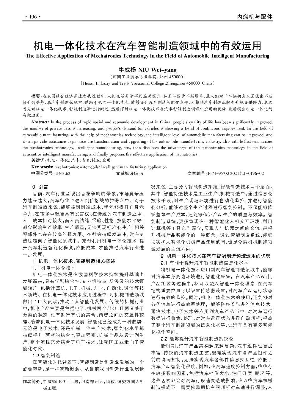 当前位置: 智能网联汽车  >  车路云一体化  > 机电一体化技术在汽车智能制造领域中的有效运用.pdf