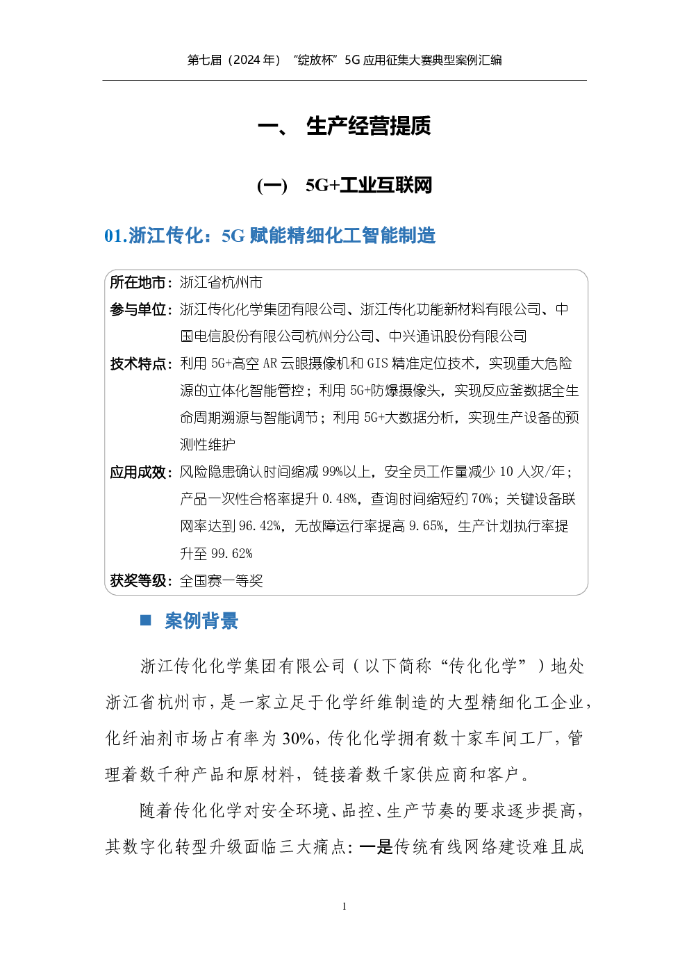 当前位置: 金融&保险&公司治理  >  行业分析报告  > 第七届(2024年)“绽放杯”5G应用征集大赛典型案例汇编.pdf