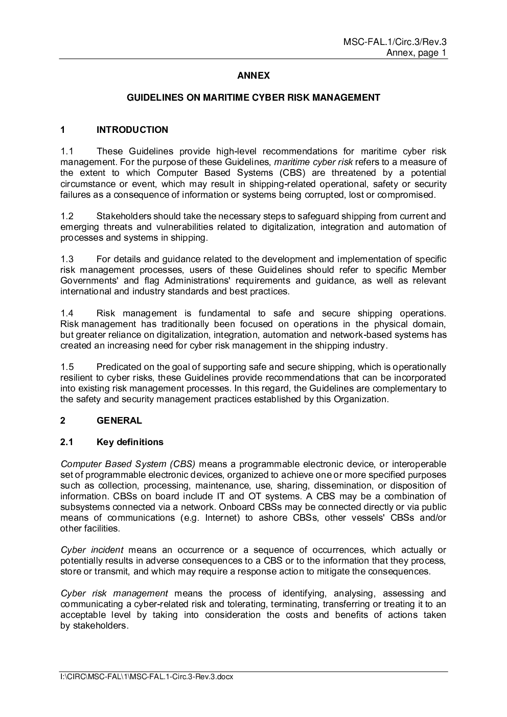 当前位置: 海洋空间  >  海洋智能装备  > MSC-FAL.1-Circ.3-Rev.3 4 April 2025 GUIDELINES ON MARITIME CYBER RISK MANAGEMENT.pdf