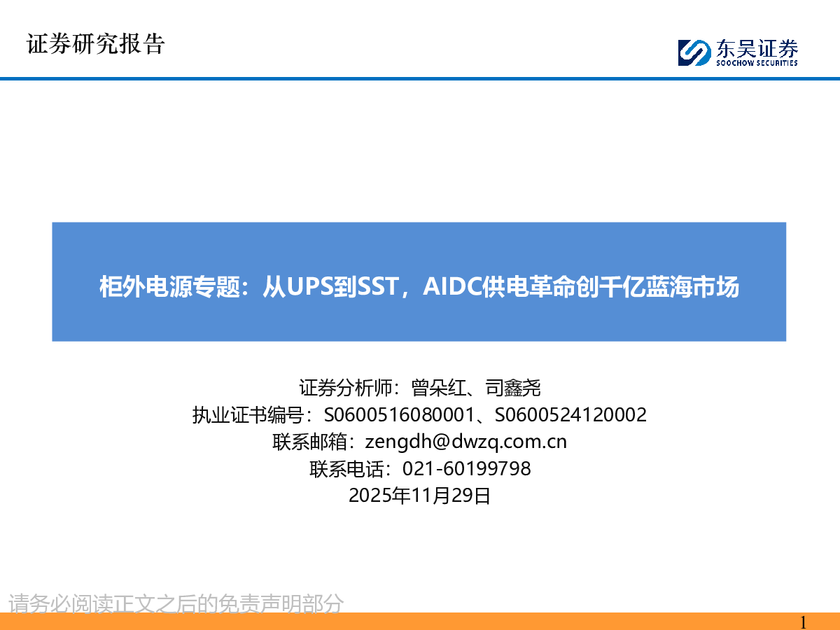 柜外电源行业专题:从UPS到SST,AIDC供电革命创千亿蓝海市场.pdf