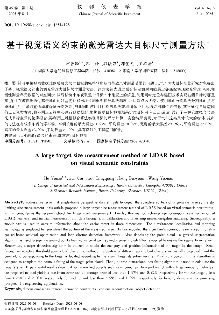 基于视觉语义约束的激光雷达大目标尺寸测量方法.pdf