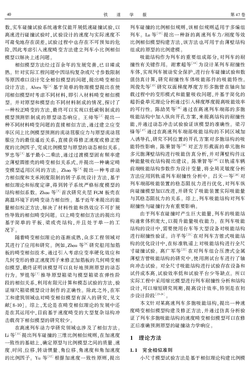 冲击载荷下列车多胞吸能结构的速度畸变相似模型设计.pdf