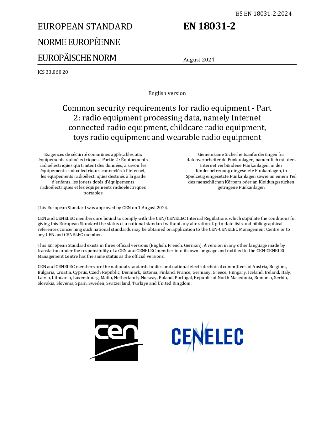 当前位置: 金融&保险&公司治理  >  行业标准规范  > BS EN 18031-2-2024.pdf