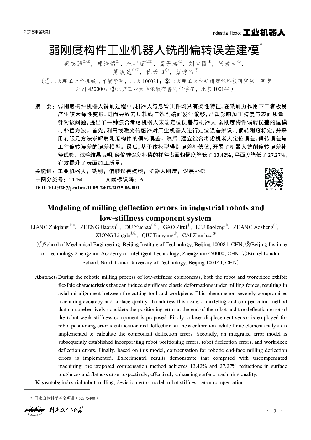 弱刚度构件工业机器人铣削偏转误差建模.pdf