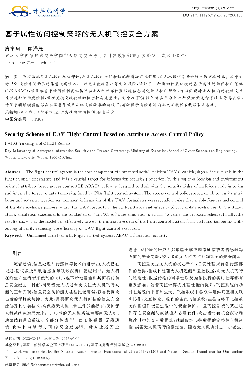 基于属性访问控制策略的无人机飞控安全方案.pdf