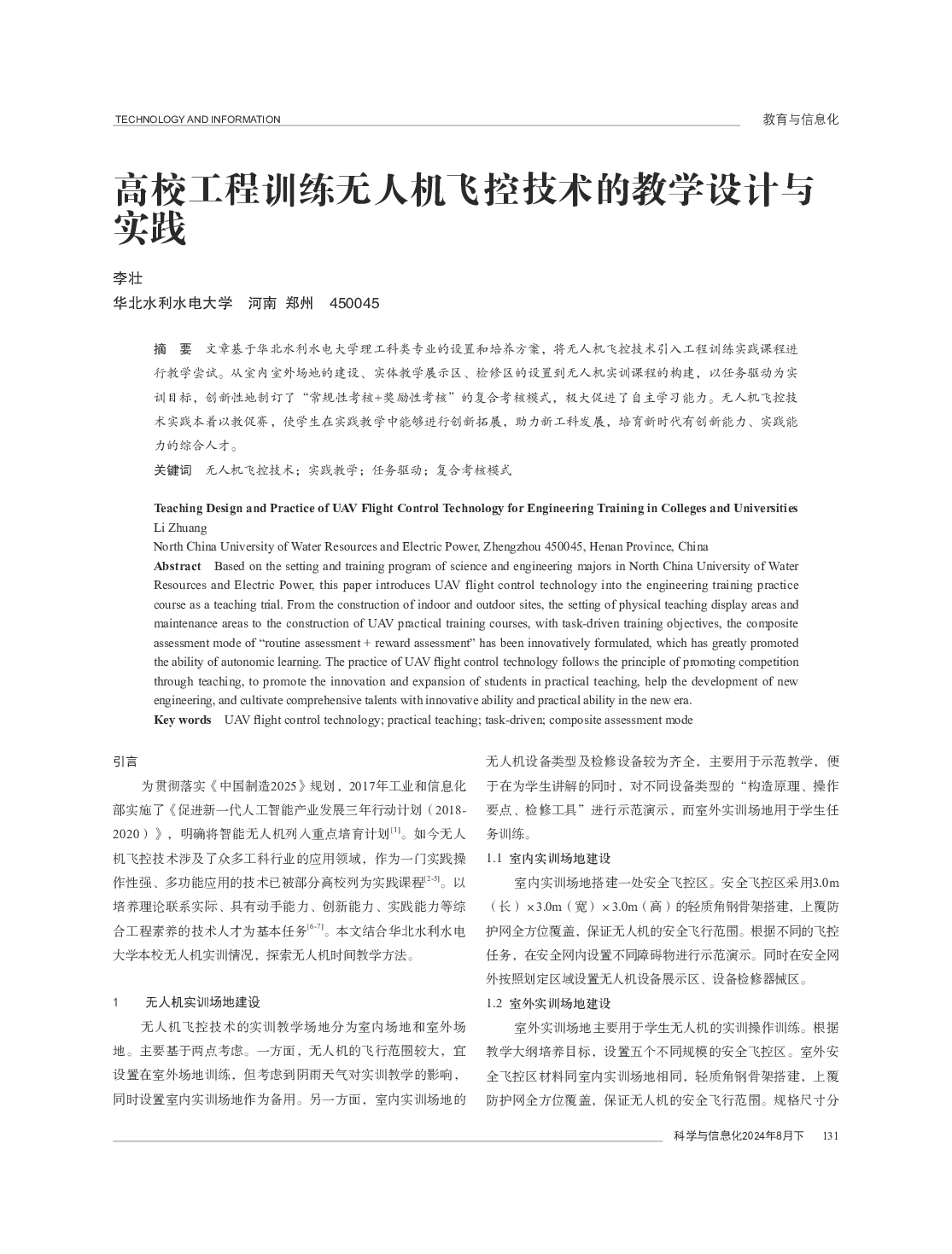 当前位置: 航空航天  >  无人机  > 高校工程训练无人机飞控技术的教学设计与实践.pdf
