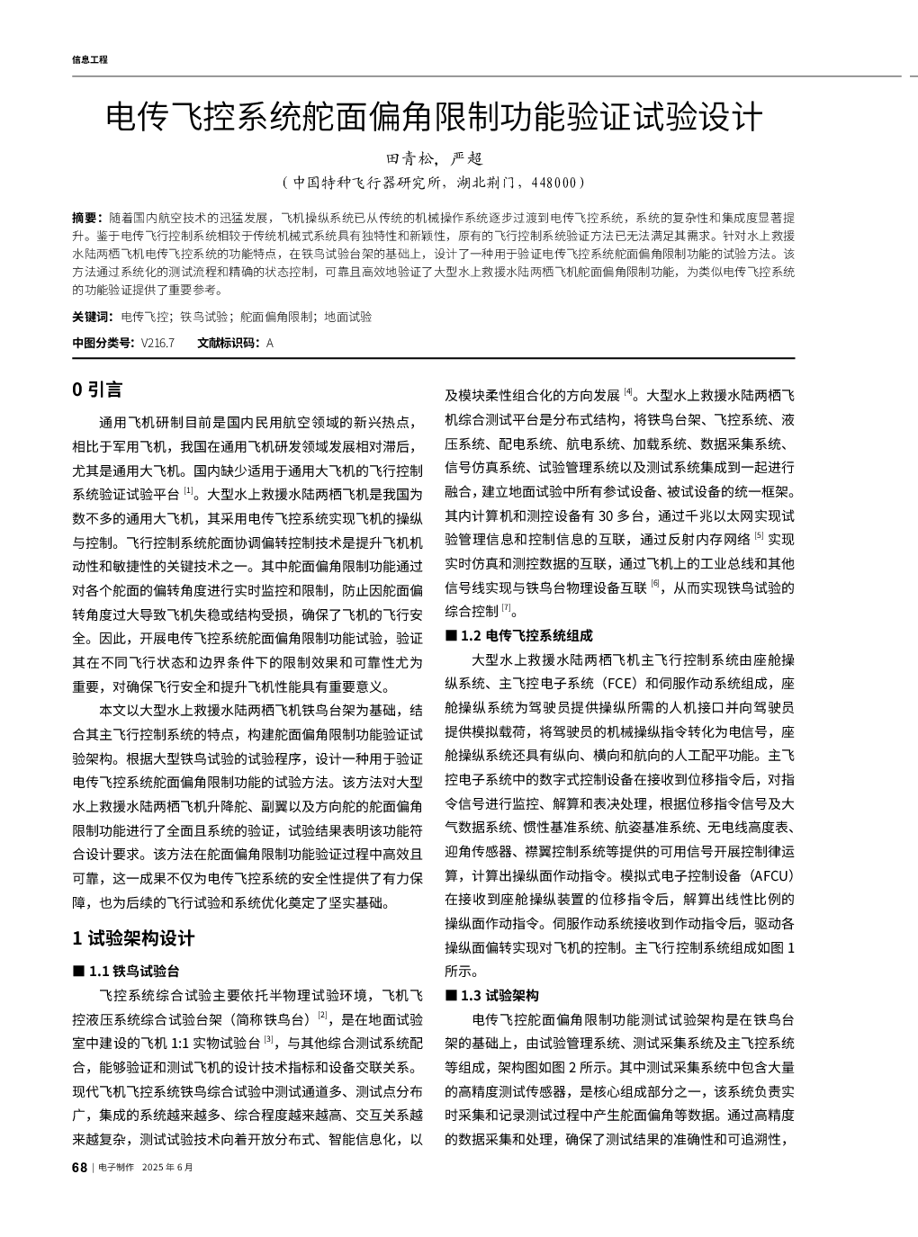 当前位置: 航空航天  >  无人机  > 电传飞控系统舵面偏角限制功能验证试验设计.pdf