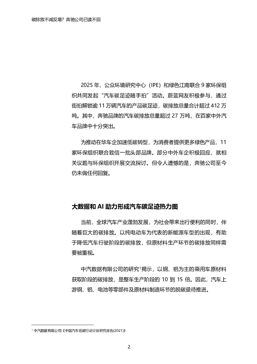 当前位置: 碳达峰/碳中和  >  交通领域  > 2025年汽车产品碳足迹系列报告2-碳排放不减反增?奔驰公司已读不回.pdf