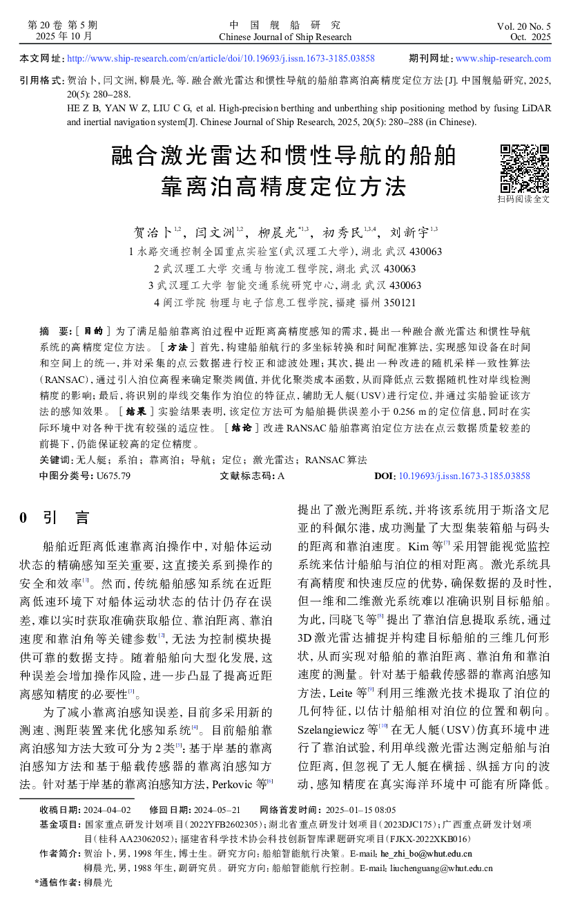融合激光雷达和惯性导航的船舶靠离泊高精度定位方法.pdf