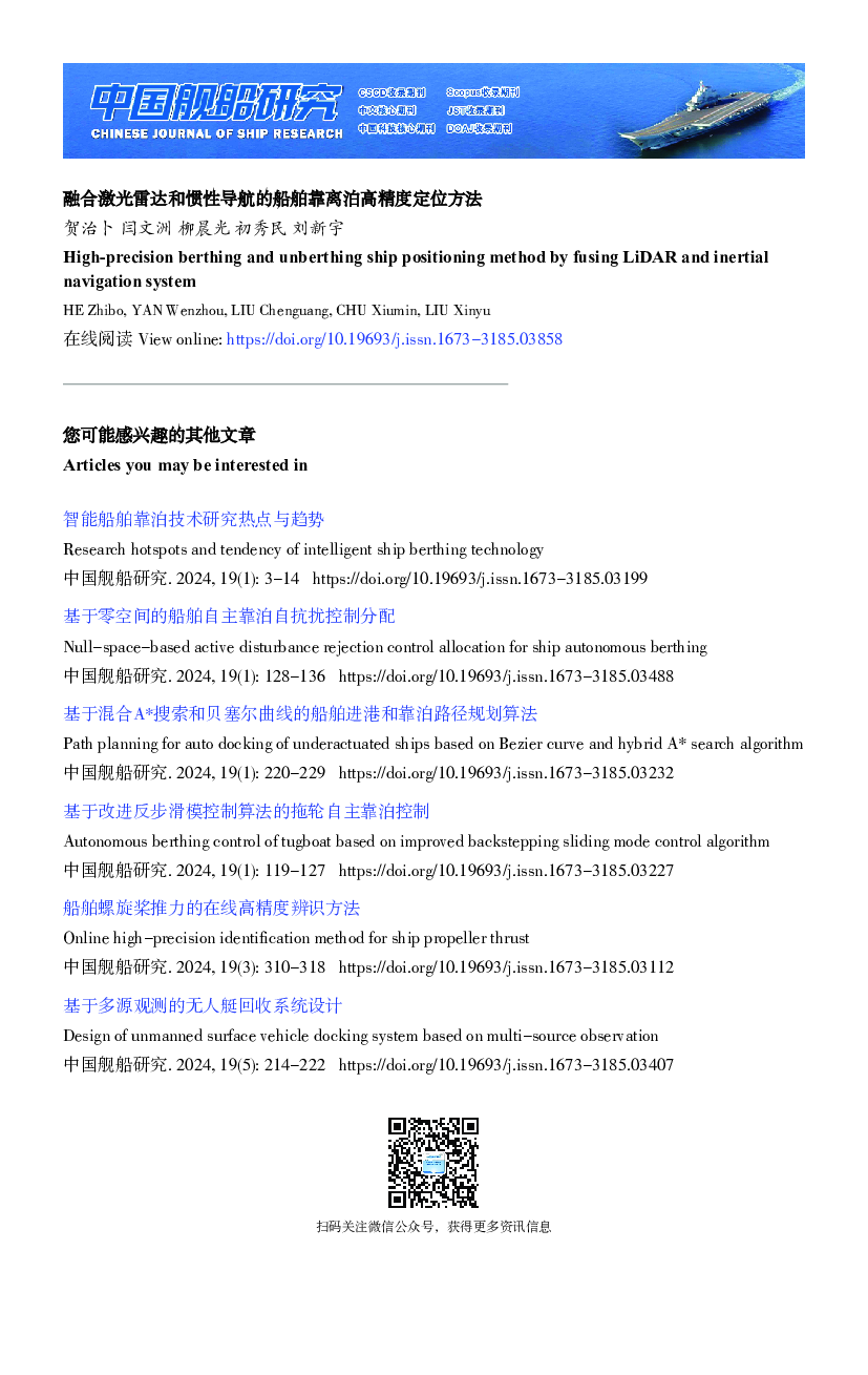 当前位置: 海洋空间  >  高端特种船舶  > 融合激光雷达和惯性导航的船舶靠离泊高精度定位方法.pdf