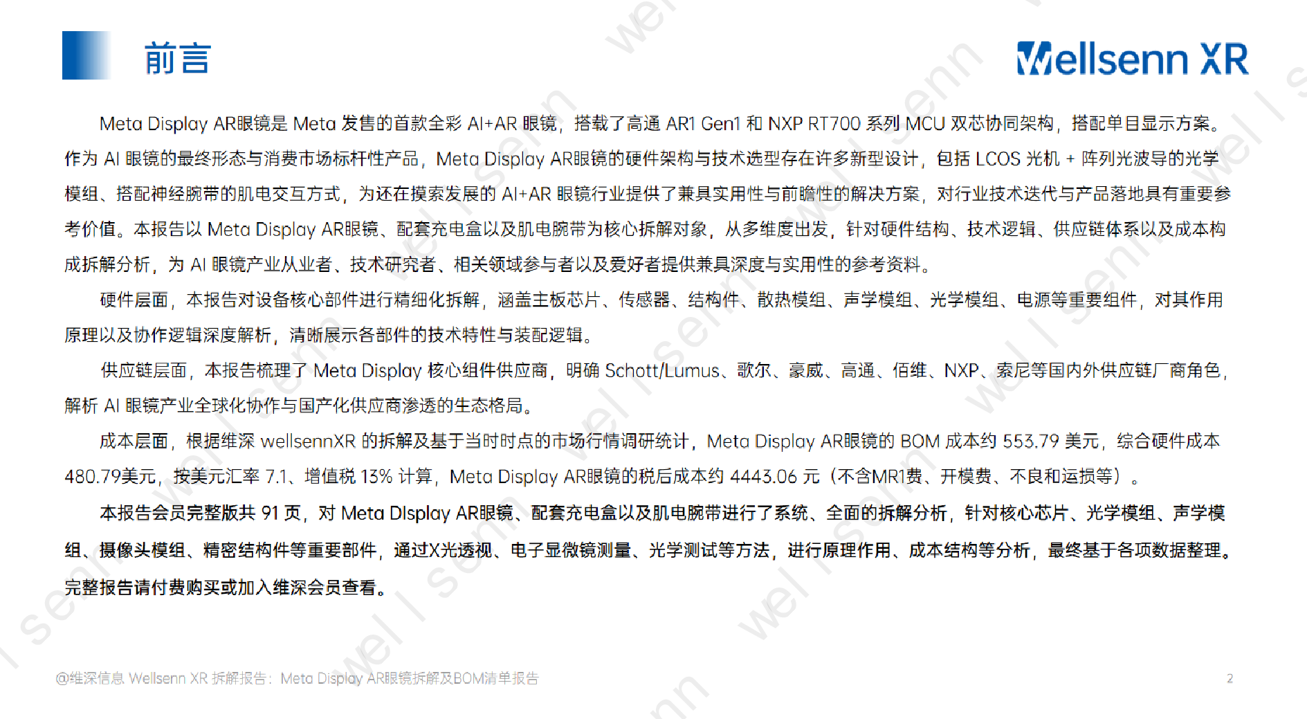 wellsenn+AI眼镜拆解及BOM成本报告:Meta+Display+AR眼镜-免费版.pdf