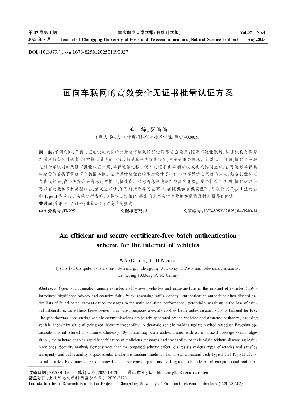 面向车联网的高效安全无证书批量认证方案.pdf