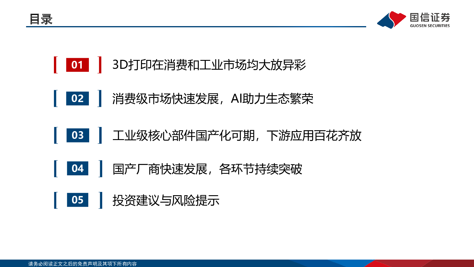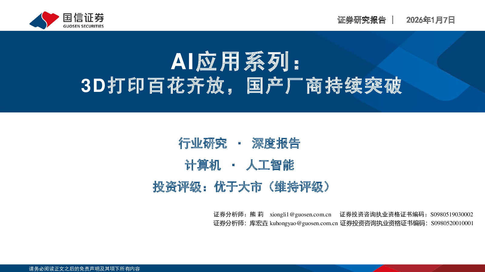 当前位置: 智能制造  >  增材制造/3D打印  > 国信证券:AI应用系列:3D打印百花齐放,国产厂商持续突破.pdf