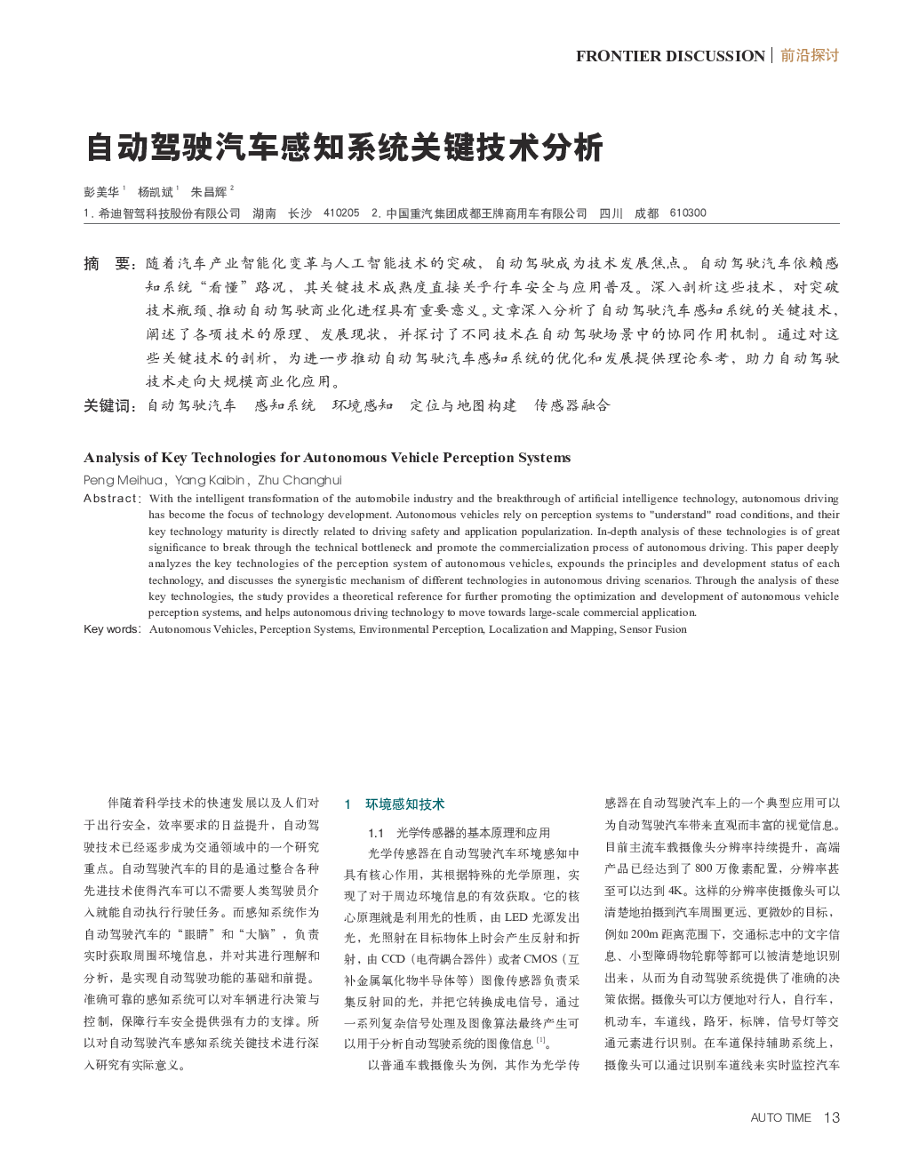 自动驾驶汽车感知系统关键技术分析.pdf