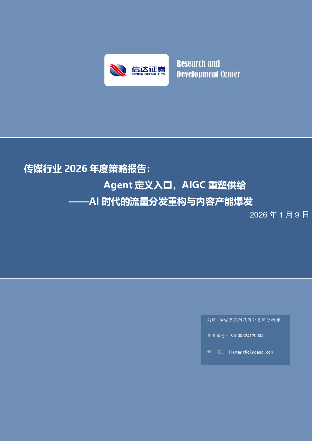 当前位置: 金融&保险&公司治理  >  市场营销/公关  > 传媒行业2026年度策略报告:Agent定义入口,AIGC重塑供给――AI时代的流量分发重构与内容产能爆发.pdf