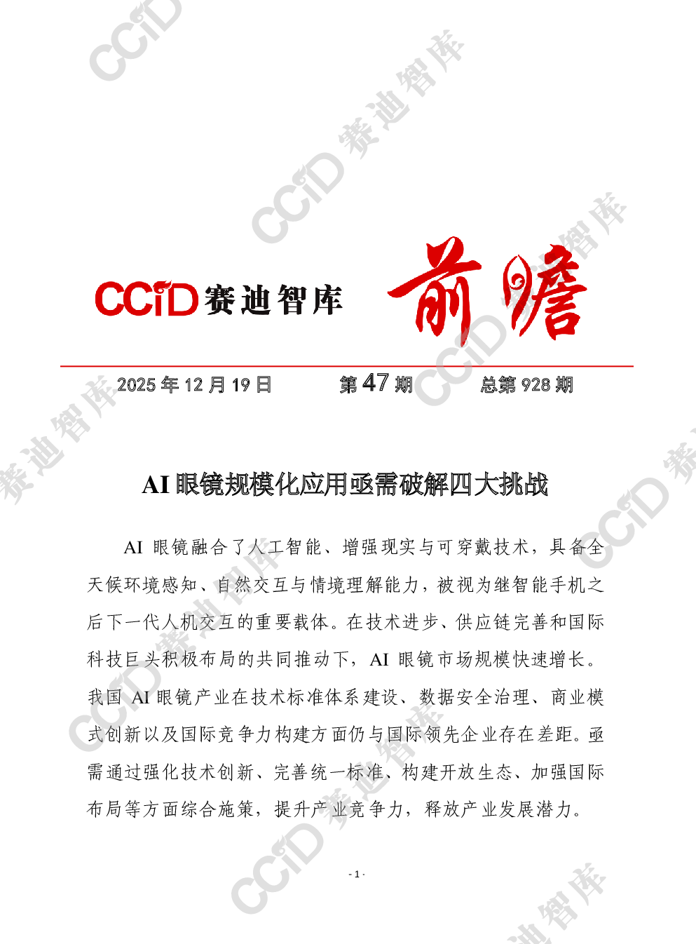 2025年第47期(总928期):AI眼镜规模化应用亟需破解四大挑战.pdf