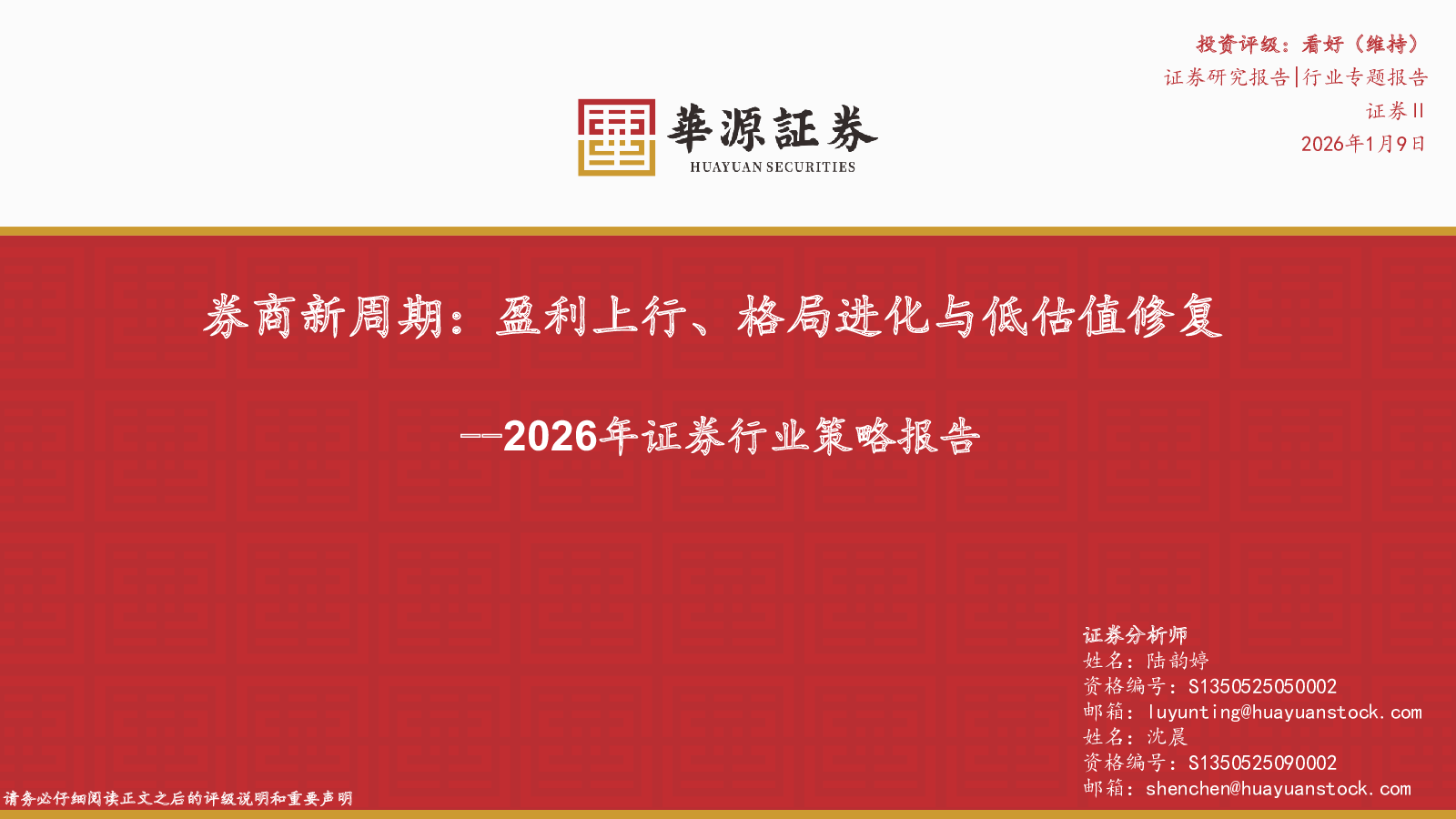 当前位置: 金融&保险&公司治理  >  行业标准规范  > 2026年证券行业策略报告:券商新周期:盈利上行、格局进化与低估值修复.pdf