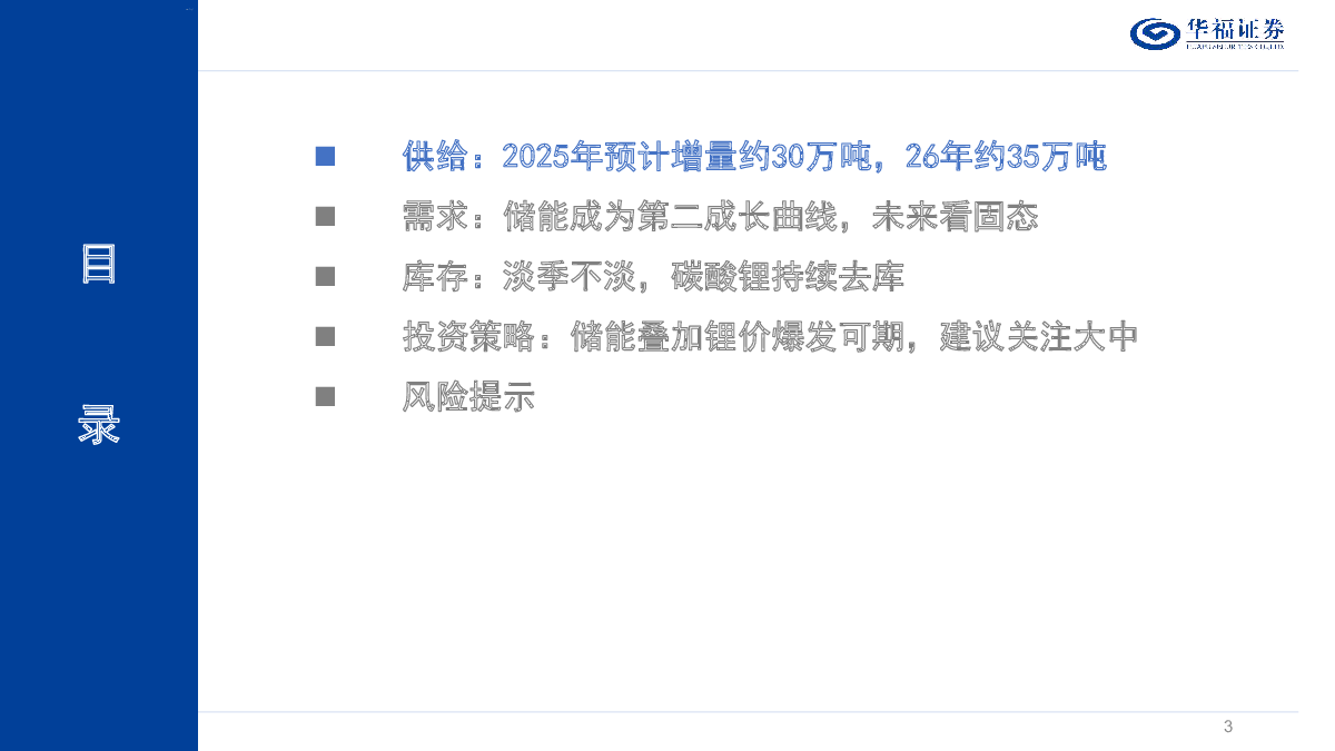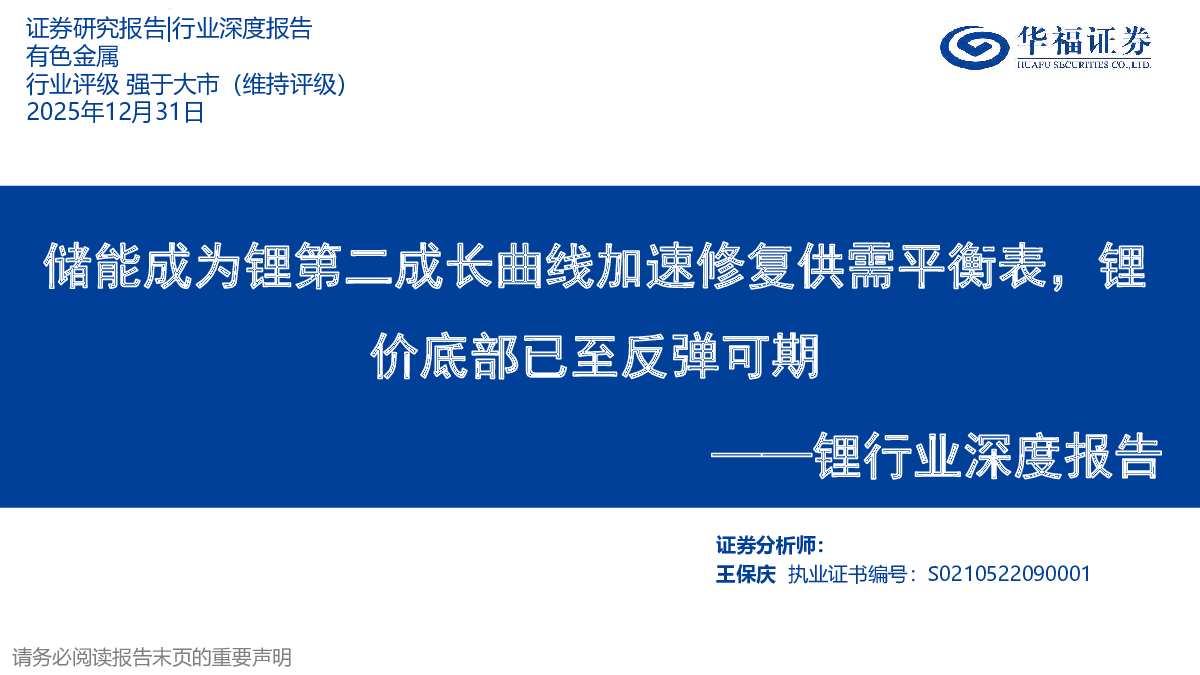当前位置: 金融&保险&公司治理  >  银行/投融资  > 锂行业深度报告:储能成为锂第二成长曲线加速修复供需平衡表,锂价底部已至反弹可期.pdf