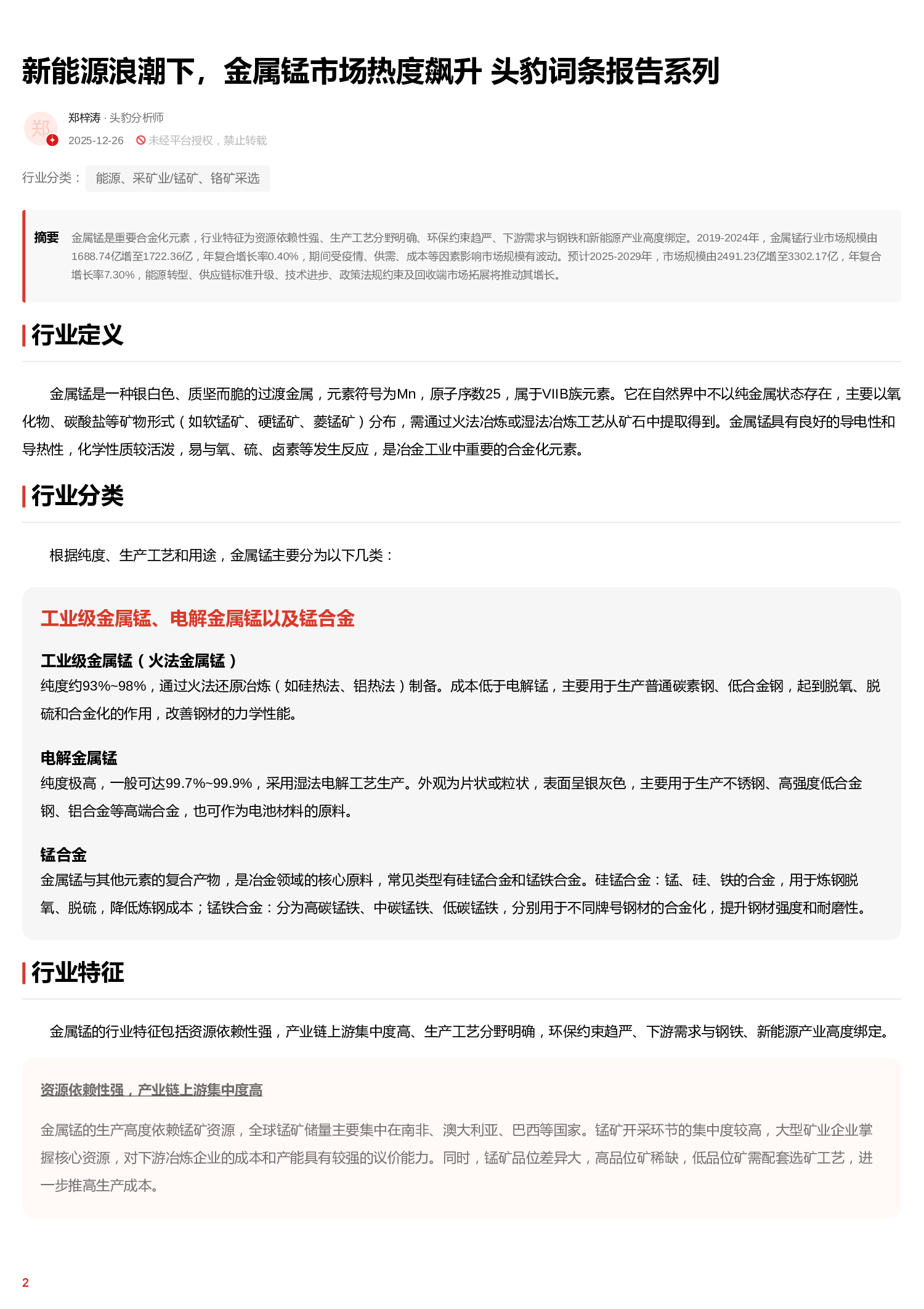 当前位置: 新材料创新  >  新能源材料  > 新能源浪潮下,金属锰市场热度飙升 头豹词条报告系列.pdf