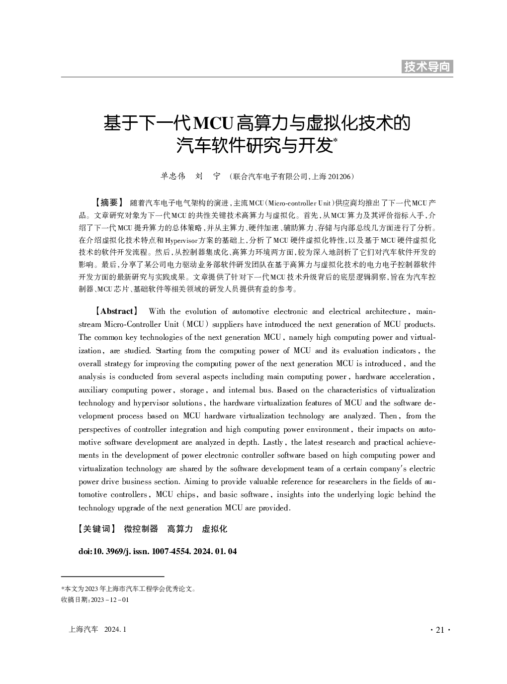 基于下一代MCU高算力与虚拟化技术的汽车软件研究与开发.pdf