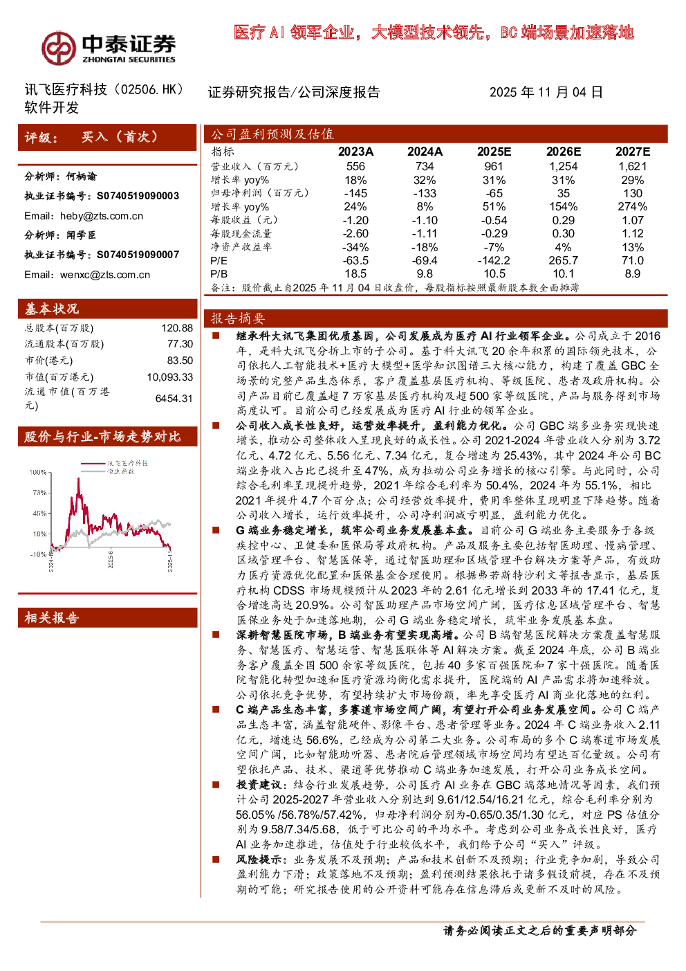 当前位置: 健康与医疗  >  智慧AI医疗  > 讯飞医疗科技-2506.HK-医疗AI领军企业,大模型技术领先,BC端场景加速落地.pdf