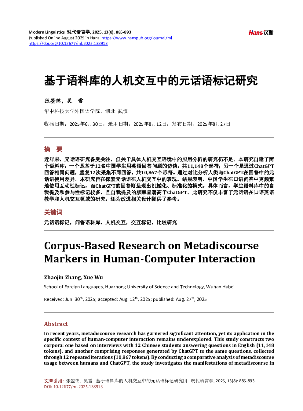 基于语料库的人机交互中的元话语标记研究.pdf