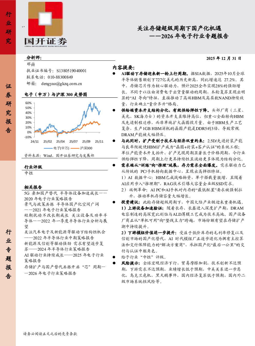 2026年电子行业专题报告:关注存储超级周期下国产化机遇.pdf