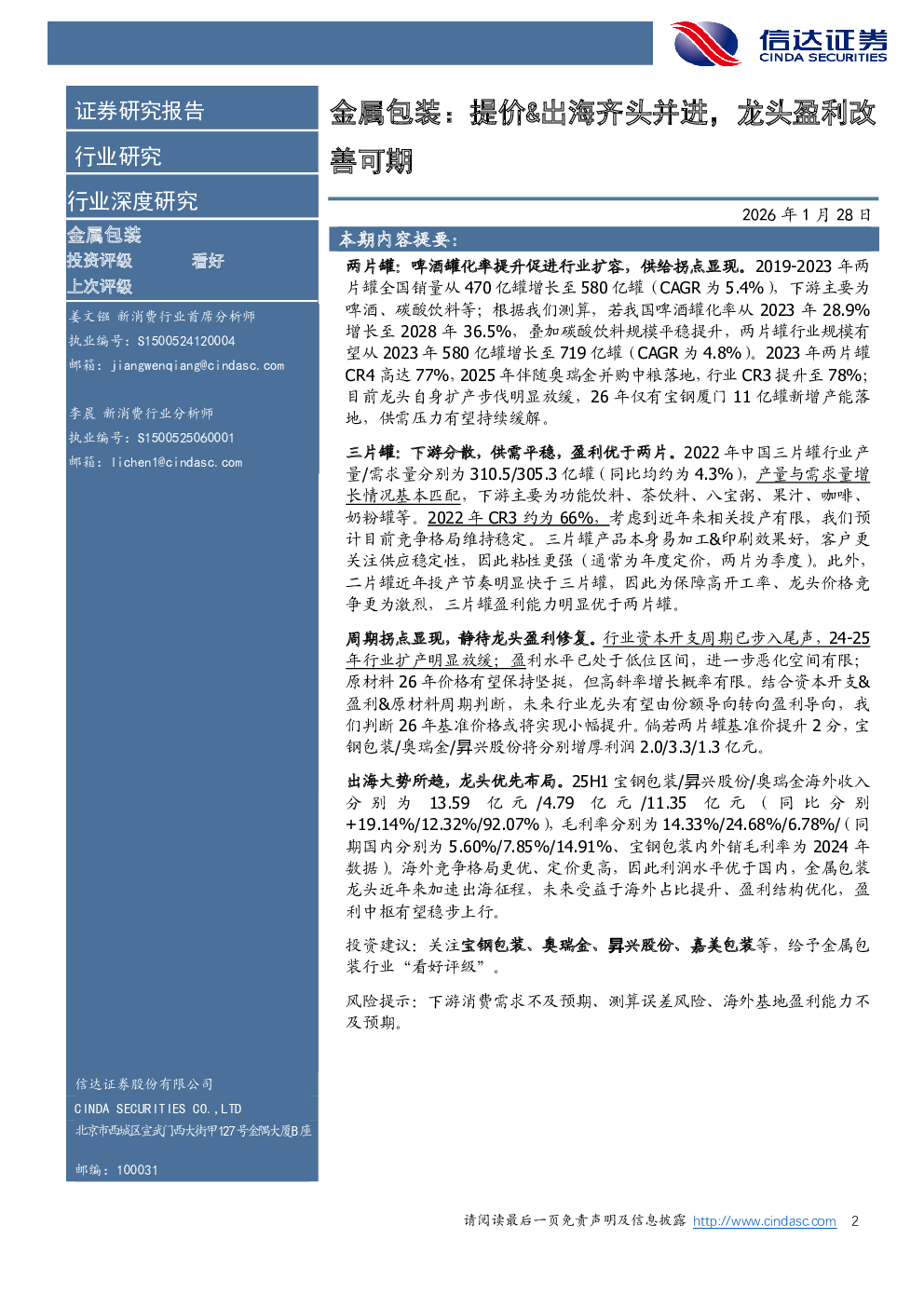 金属包装:提价&出海齐头并进,龙头盈利改善可期.pdf
