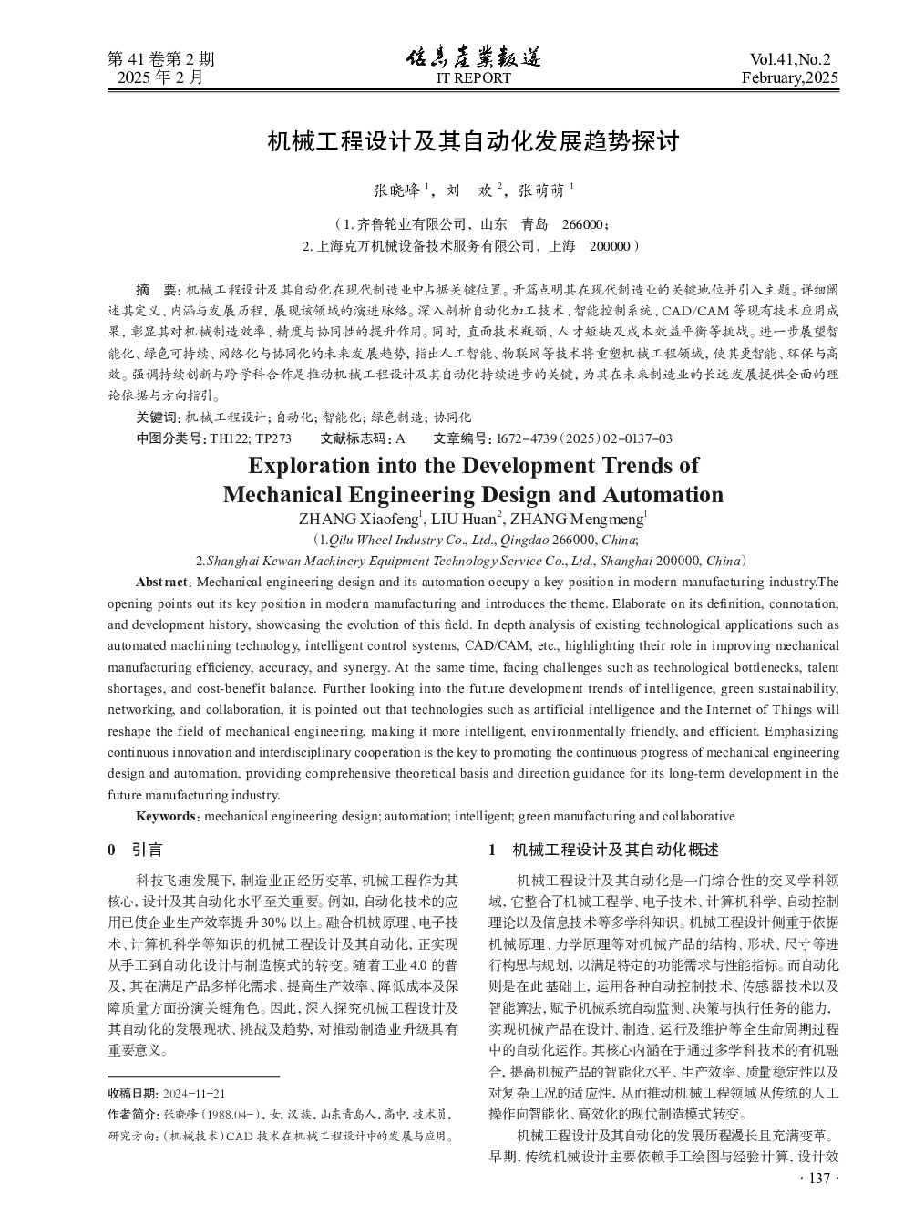 当前位置: 智能网联汽车  >  机械零件  > 机械工程设计及其自动化发展趋势探讨.pdf