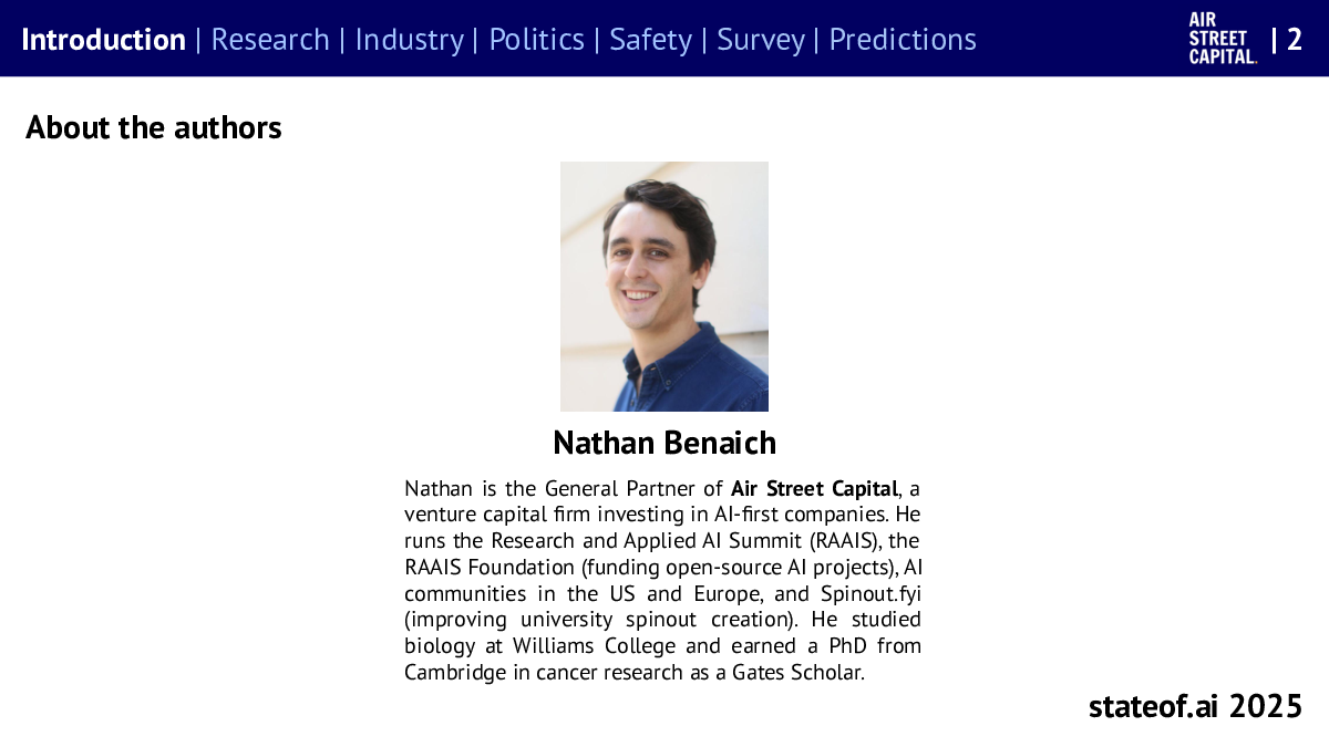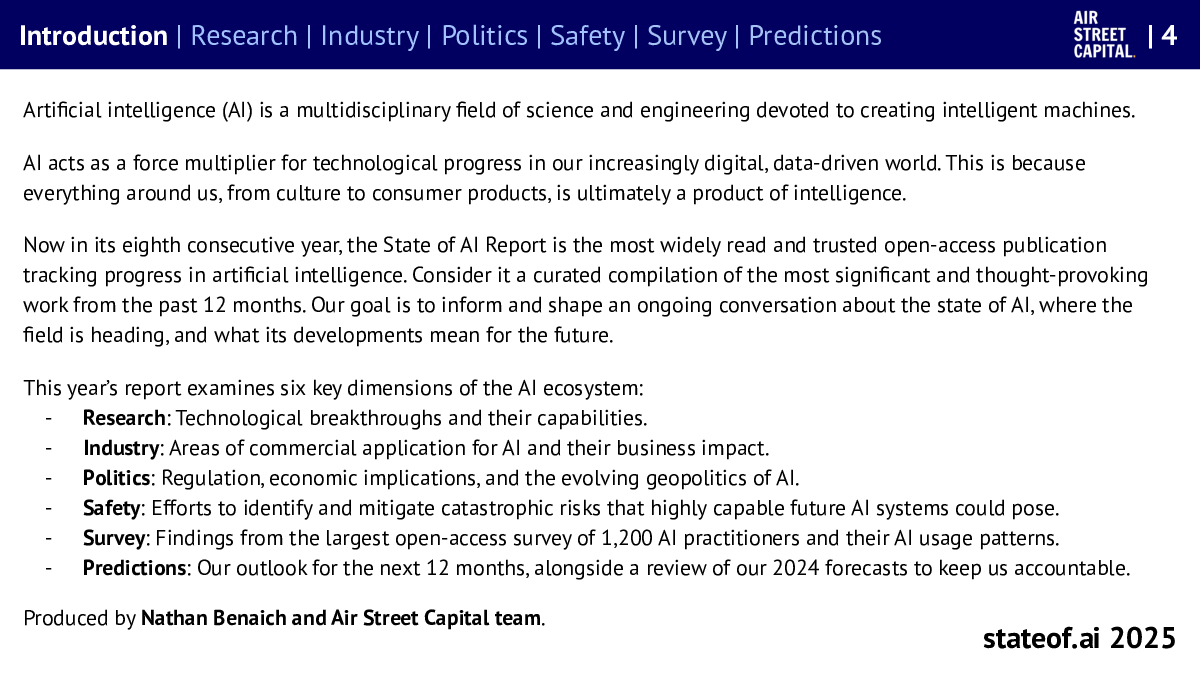 当前位置: 数字化  >  人工智能 AI  > Air Street Capital:2025年人工智能现状报告(英文版).pdf