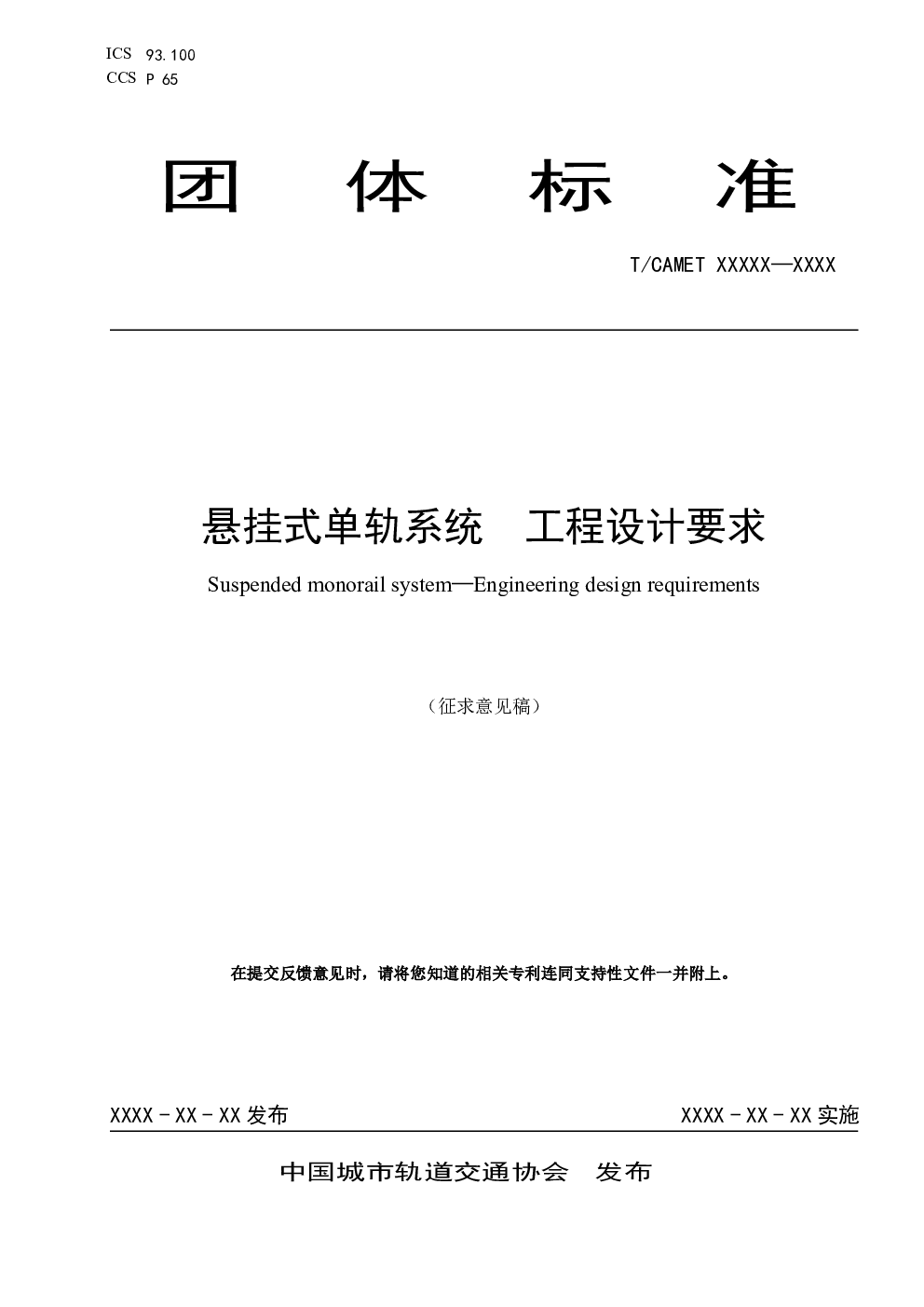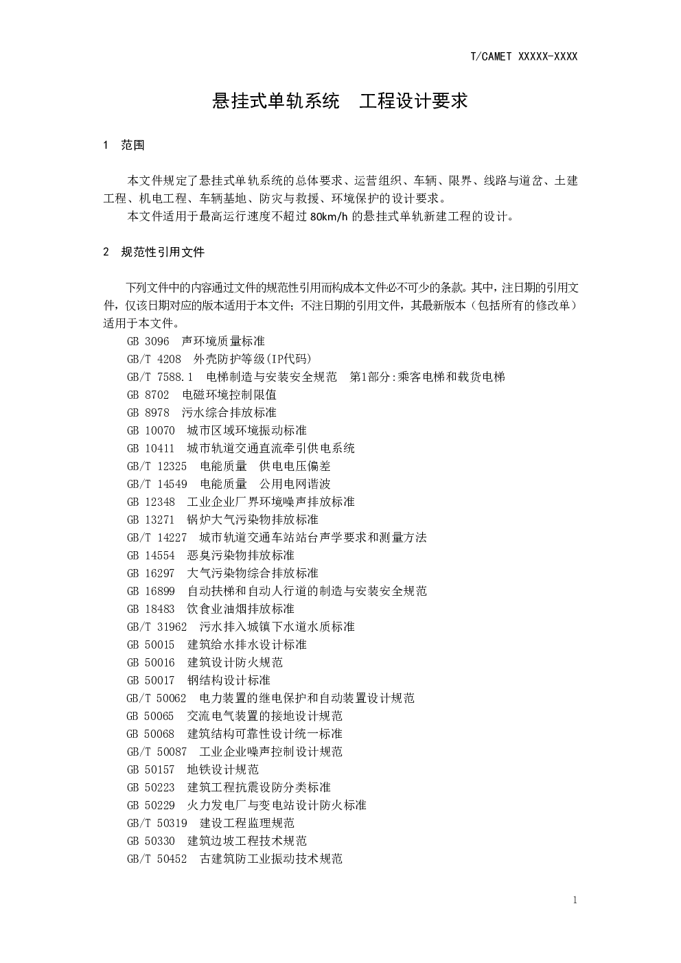 T CAMET XXXX-XXXX 悬挂式单轨系统 工程设计要求 (征求意见稿).pdf