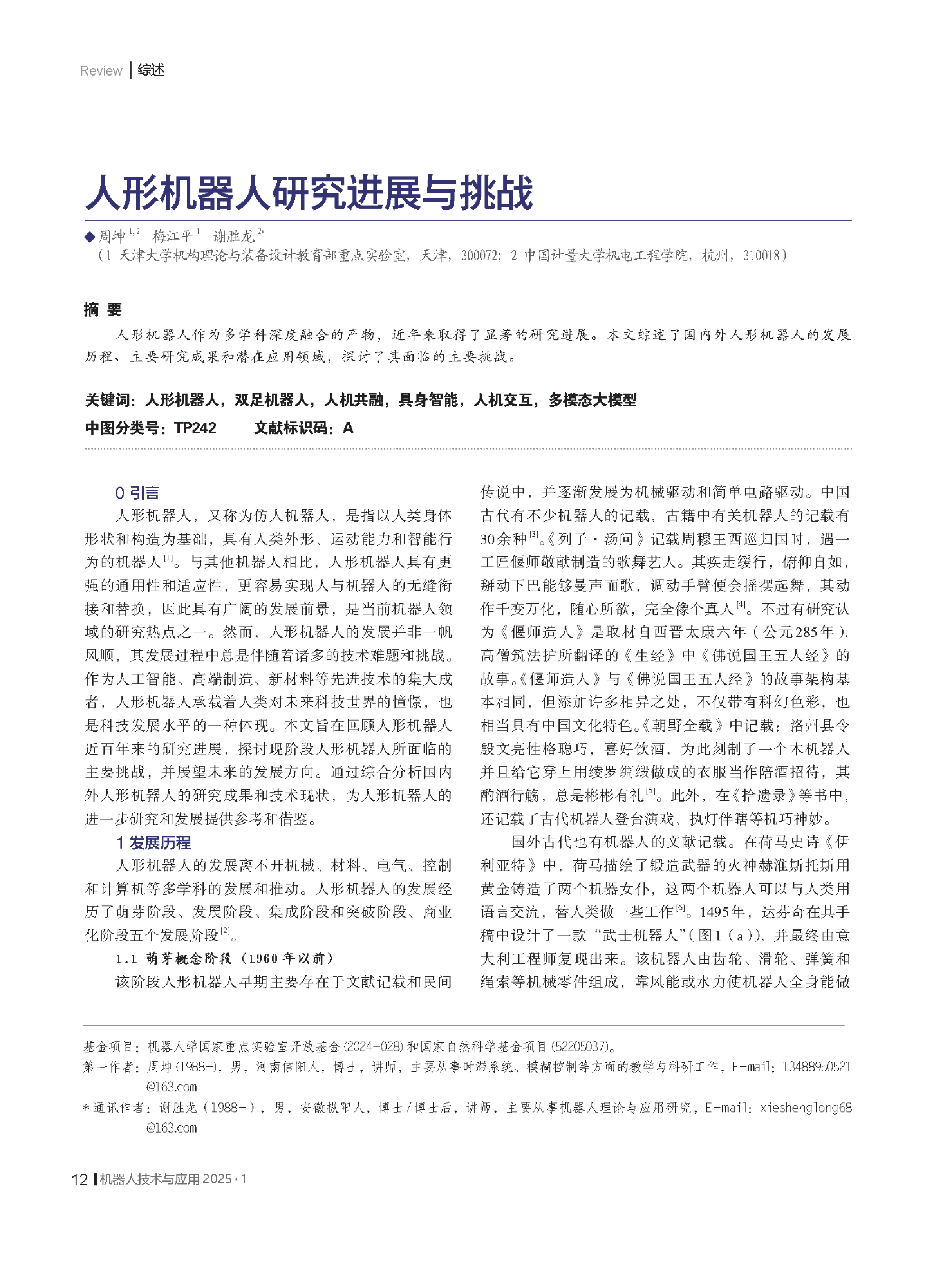 当前位置: 智能机器人  >  人形机器人  > 人形机器人研究进展与挑战.pdf